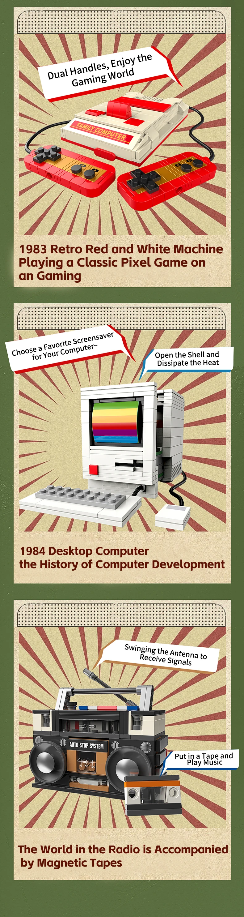 DIY Retro electrodomésticos muebles TV cinta de ordenador Walkman juego consolas Radio bloques de construcción modelo juego de ladrillos juguetes