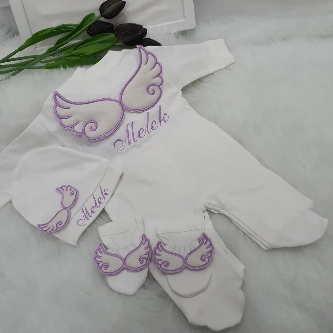 Comprar Dollbling Hospital Outlet 3 uds bordado nombre recién nacido ángulo alas mameluco manta guardería ropa de cama Swaddle traje infantil hecho a mano