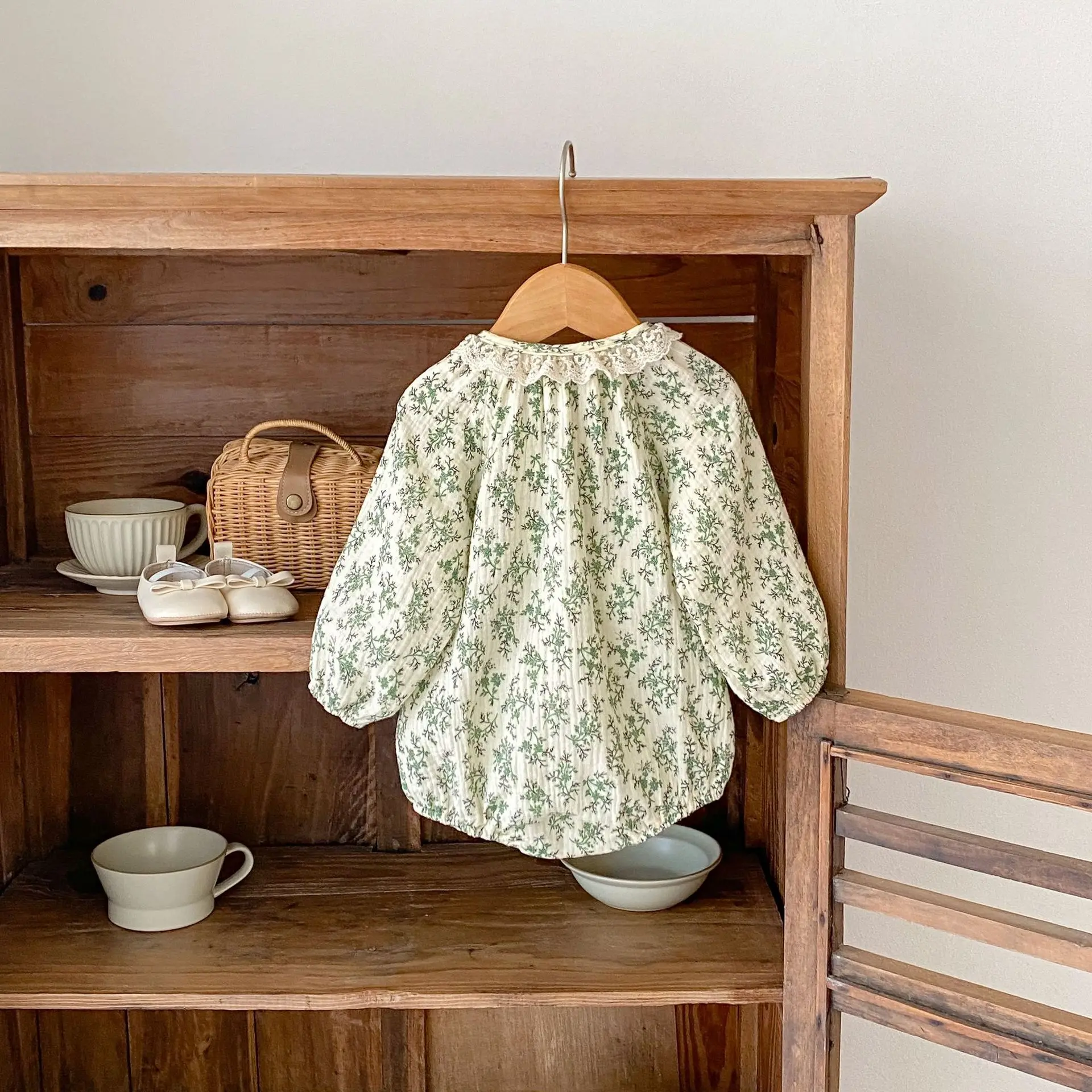 Comprar Dollbling-Mono de manga larga para niña, Pelele con cuello de encaje pequeño impreso, ropa caqui, primavera 2024