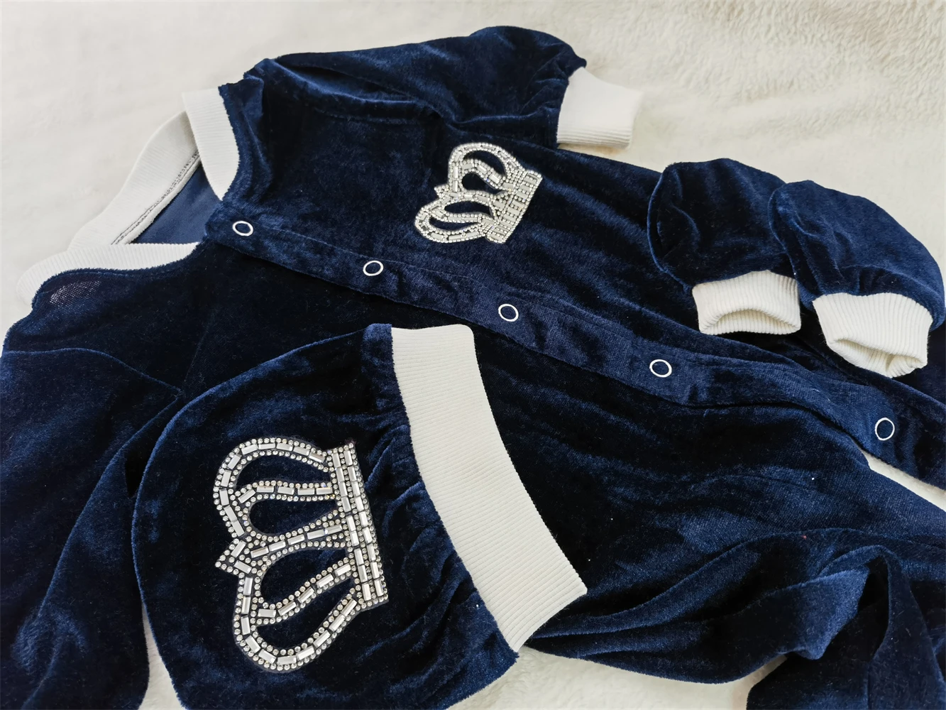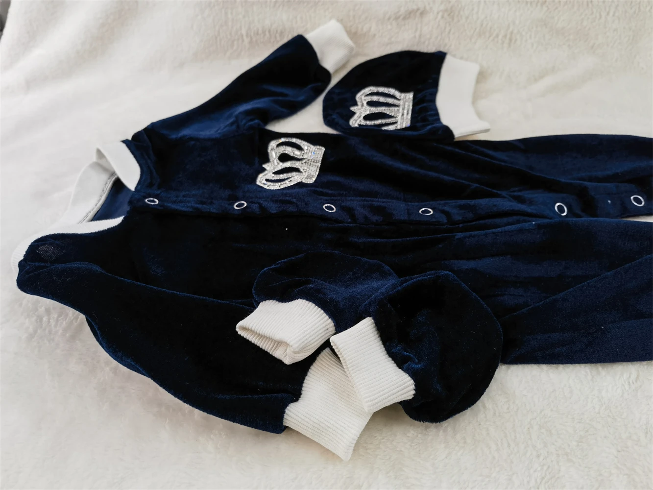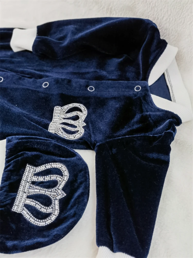 Our 3 pieces set is made up of soft, thick cotton. They are embellished with rhinestone buttons, crown jewels and bows.