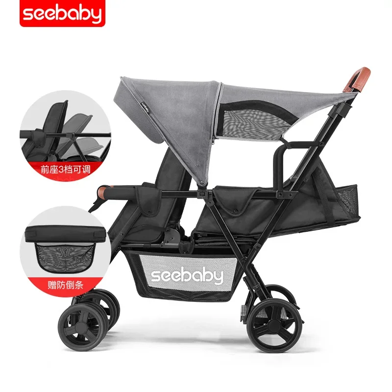 Comprar Dos Cochecitos de bebé gemelos delanteros y traseros pueden sentarse tumbarse y plegarse, cochecitos BB para bebés y niños