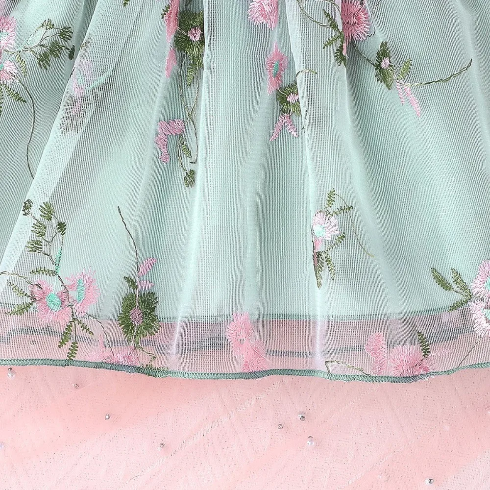 Comprar DressForKids recién nacido 6 meses-3 años lindo Floral tul bordado malla volantes Puff manga vestidos de princesa Ootd para niña
