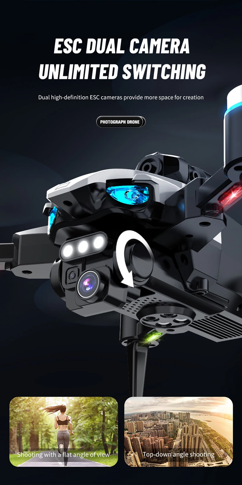 2.(Motor sin batería, cámara con ajuste servo, función de evitación de obstáculos por infrarrojos de cuatro direcciones, frente-atrás-izquierda-derecha) Con cámara, funciones adicionales incluyen: toma de fotografías y grabación de video por gestos, modo sin cabeza, parada de emergencia, trayectoria de vuelo, detección de gravedad, música MV, zoom de 50x, toma de fotografías automática.