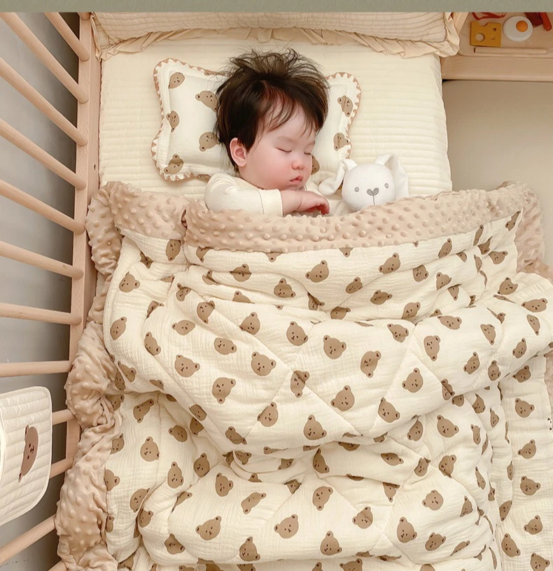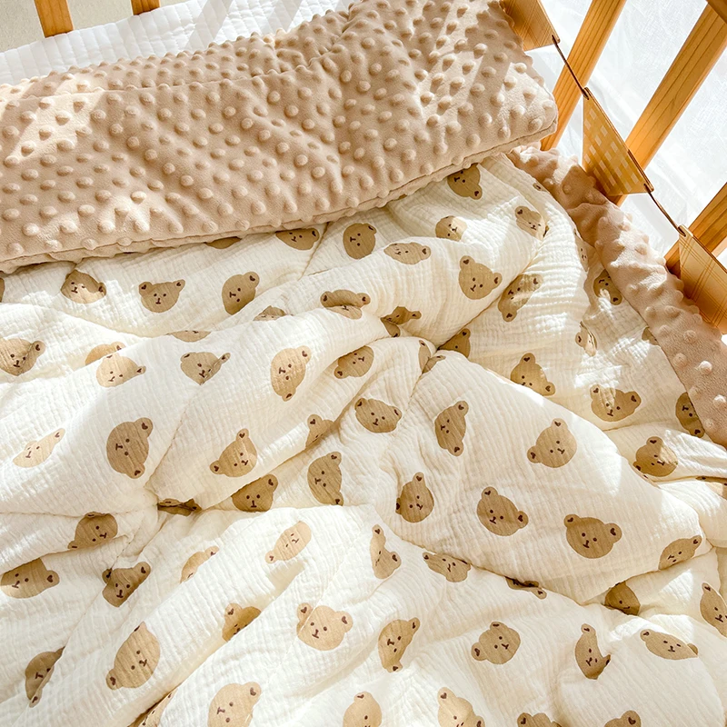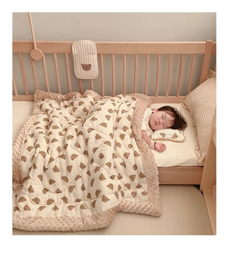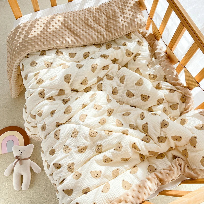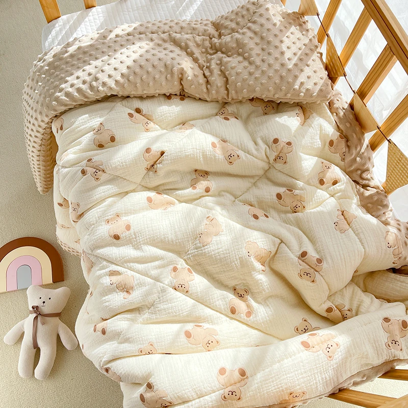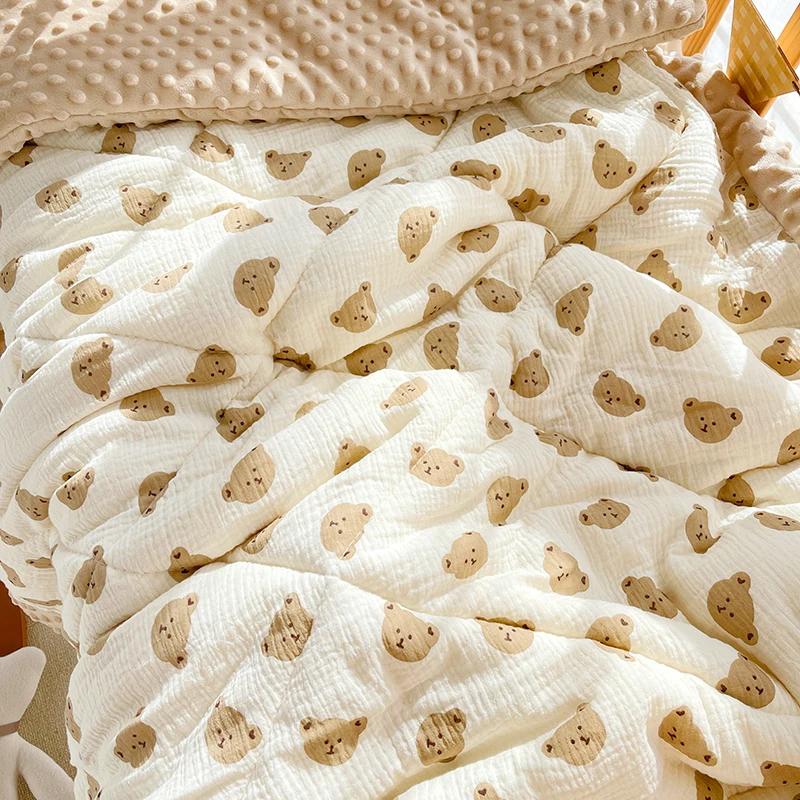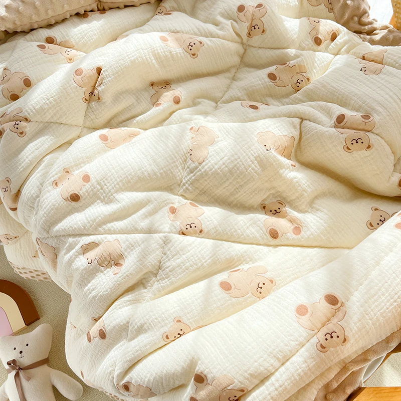 Edredón de bebé de estilo coreano, edredón sensorial de invierno, edredones para niños pequeños, bonito oso de dibujos animados, accesorios de cama para guardería