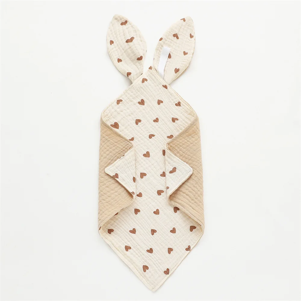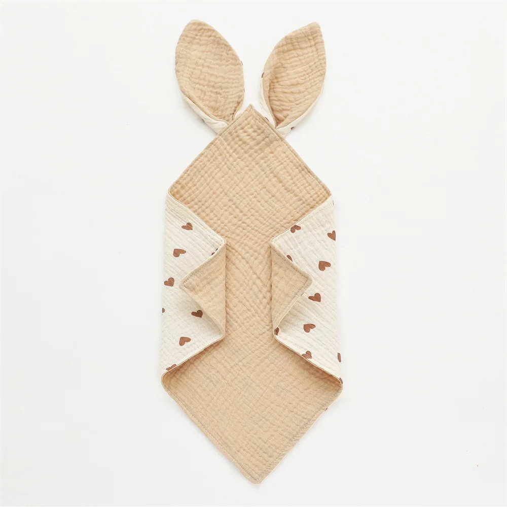 Comprar Edredón de muselina de algodón para bebé, manta suave para dormir para recién nacido, bonito juguete para dormir con Orejas de conejo, toalla tranquilizadora para dormir, Baberos, toalla para Saliva