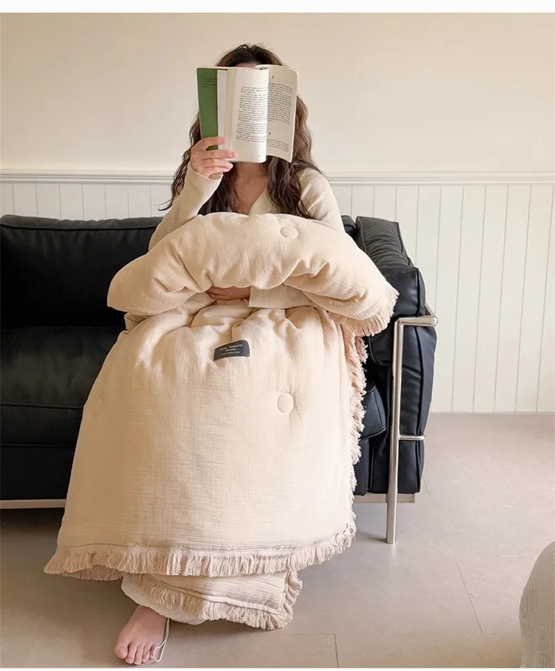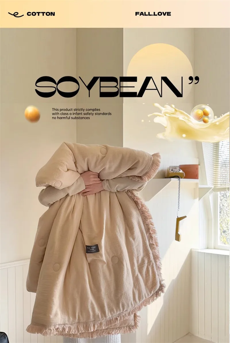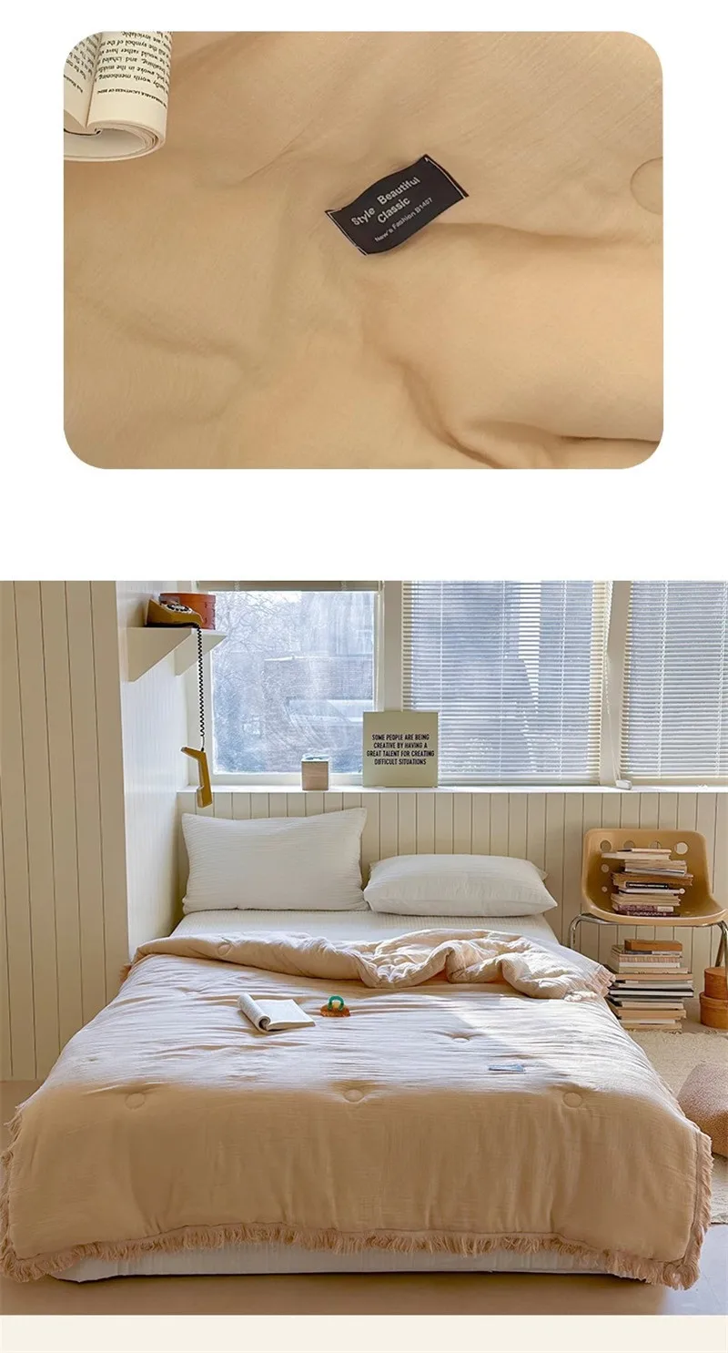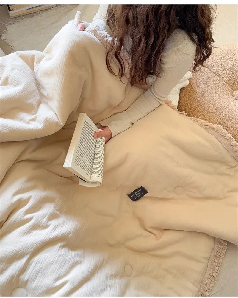 Edredón de verano de gasa de algodón de gasa de cuatro capas de fibra de clase A, hilo arrugado, relleno de fibra de soja, aire acondicionado, edredón fino lavable