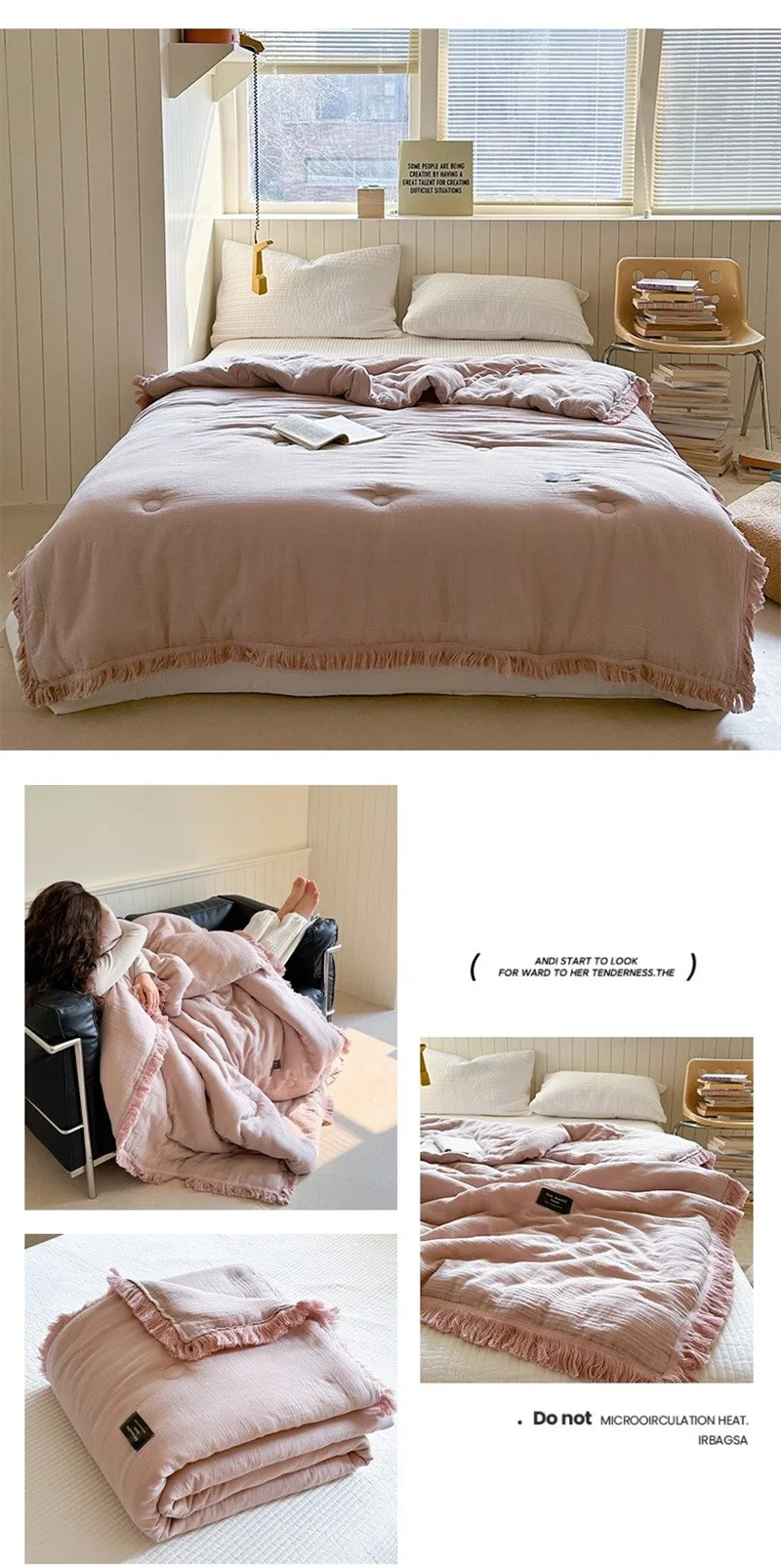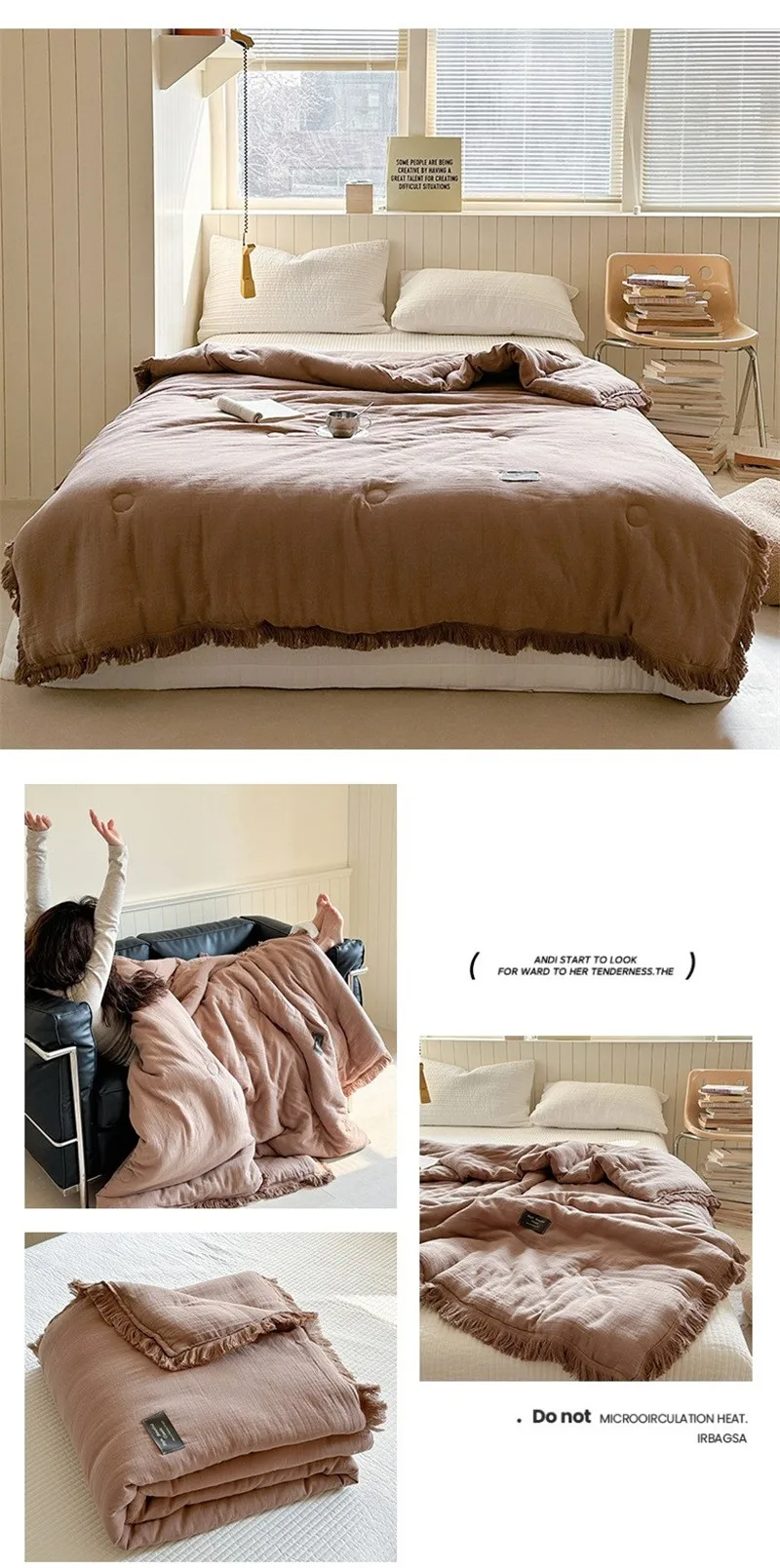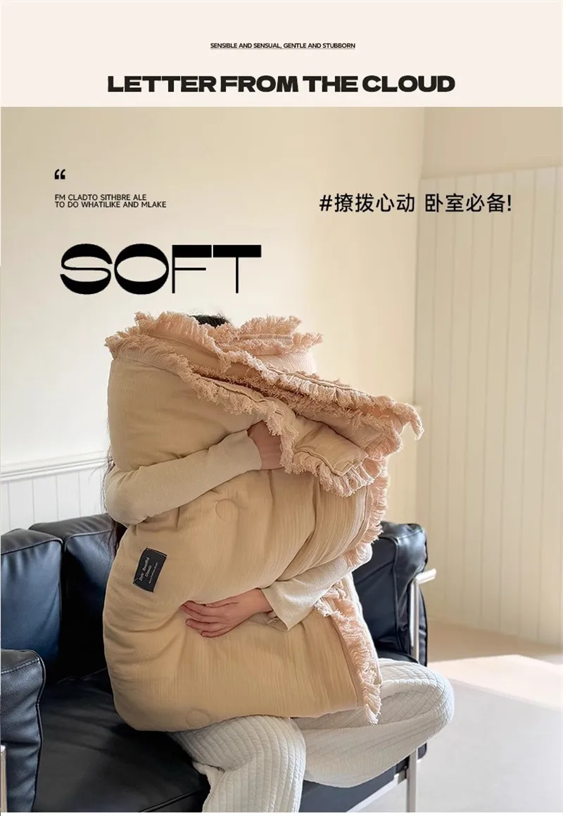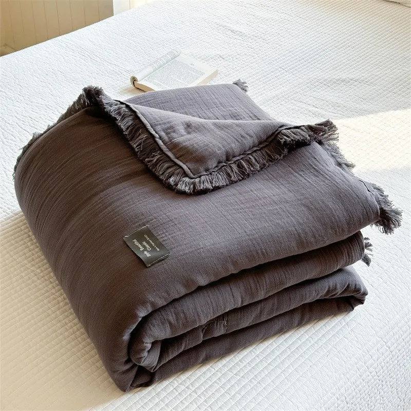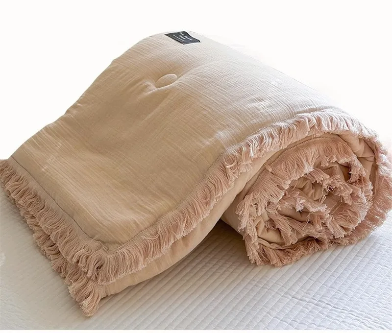 Edredón de verano de algodón de gasa de cuatro capas de fibra Clase A, relleno de fibra de soja de hilo arrugado, aire acondicionado, edredón fino lavable