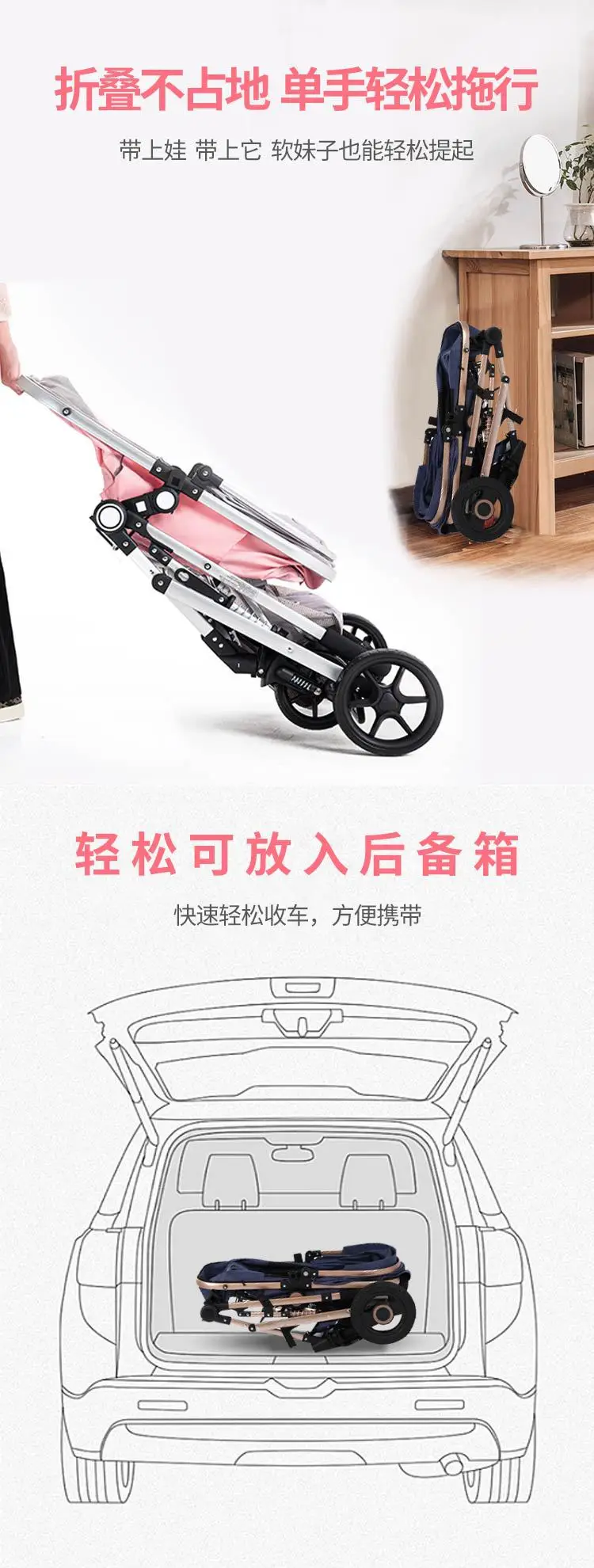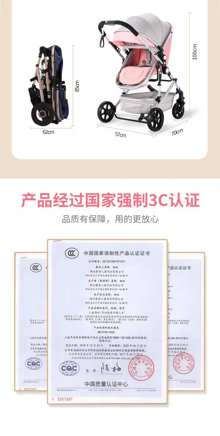 EG236: andador plegable de paisaje alto, carro ligero que absorbe los golpes, cochecito reclinable, cochecito compacto