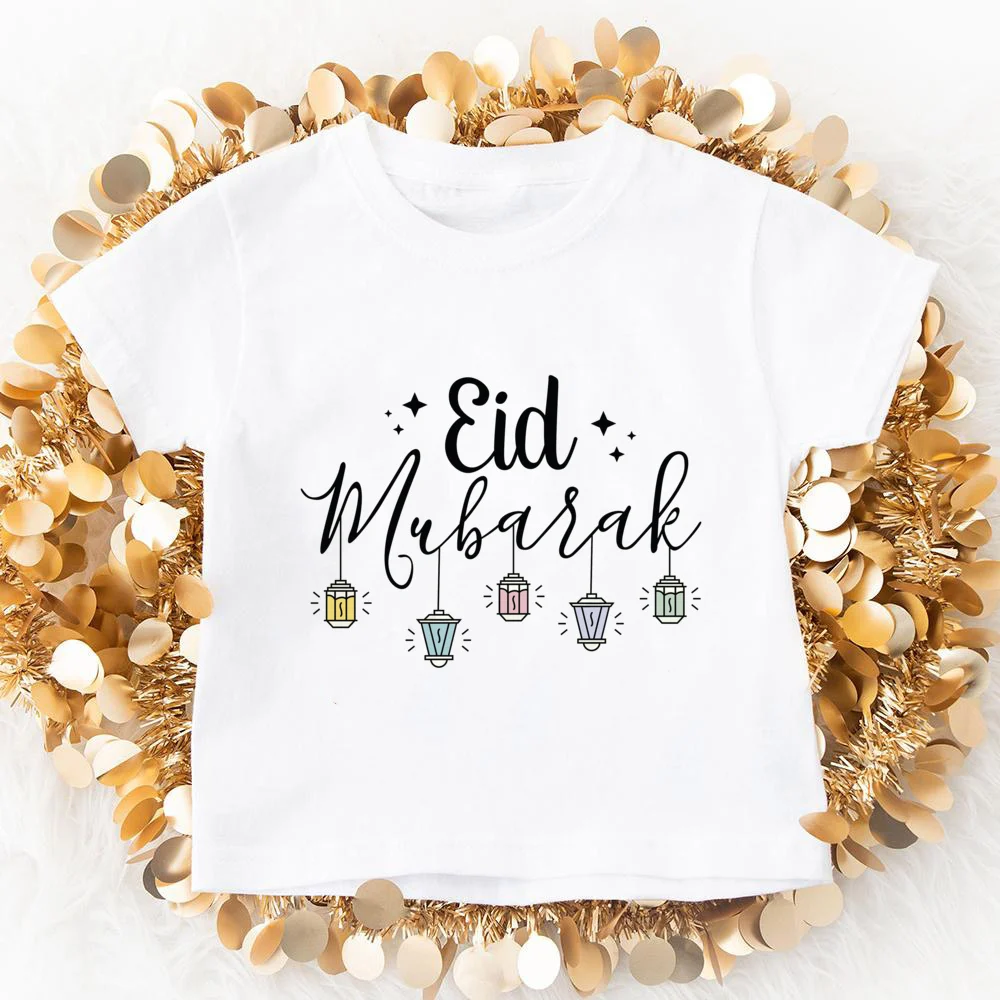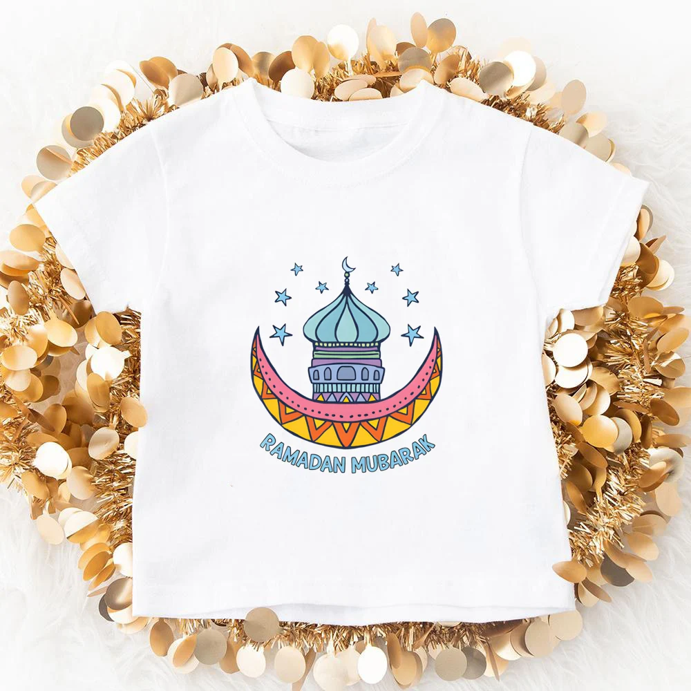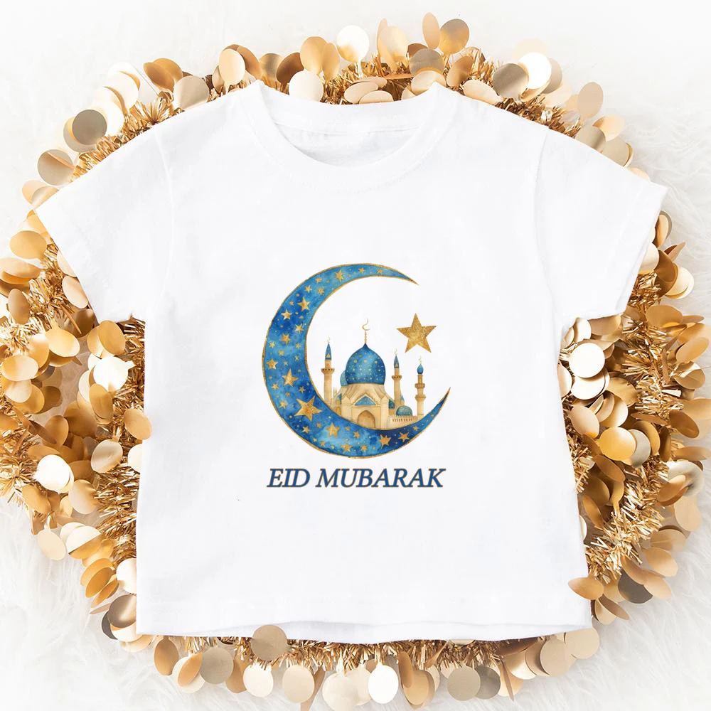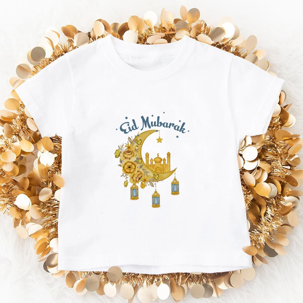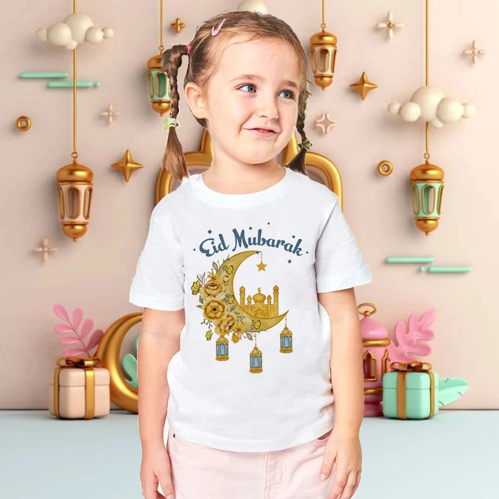 Comprar Eid Mubarak Luna flor impresa niños camisas camiseta Eid Ramadán niños niñas camiseta Tops islámico musulmán vacaciones niño camiseta traje