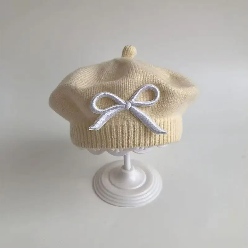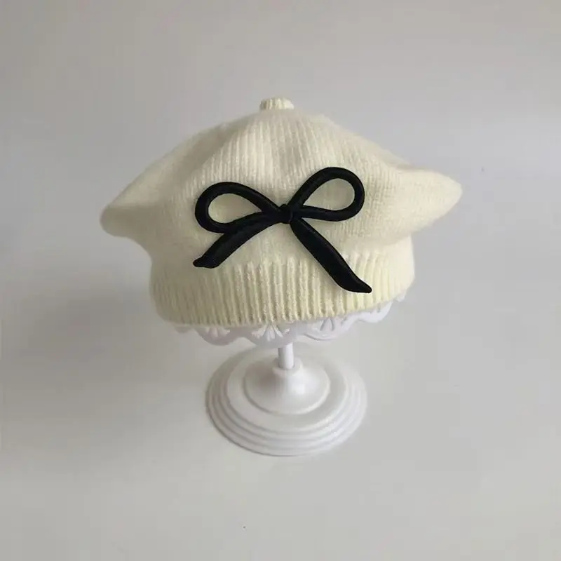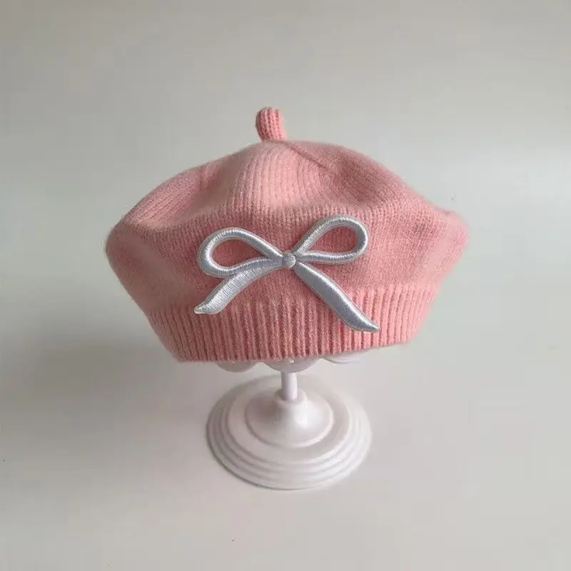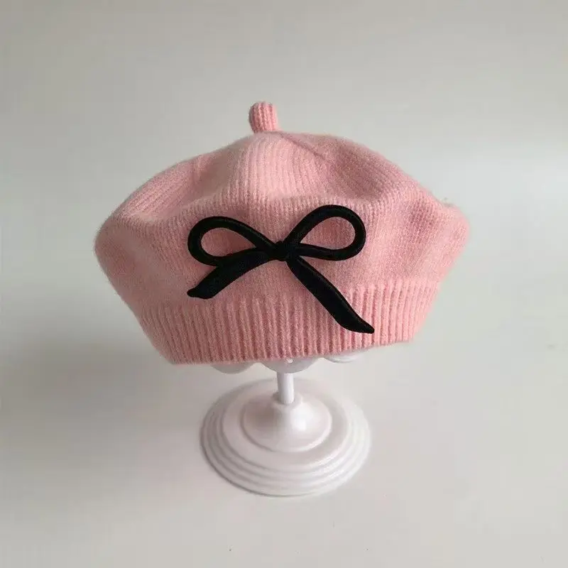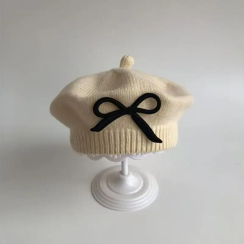 Elegante boina para niñas pequeñas para otoño e invierno: gorro de punto cálido a prueba de viento, lindo gorro de pintor para niñas.