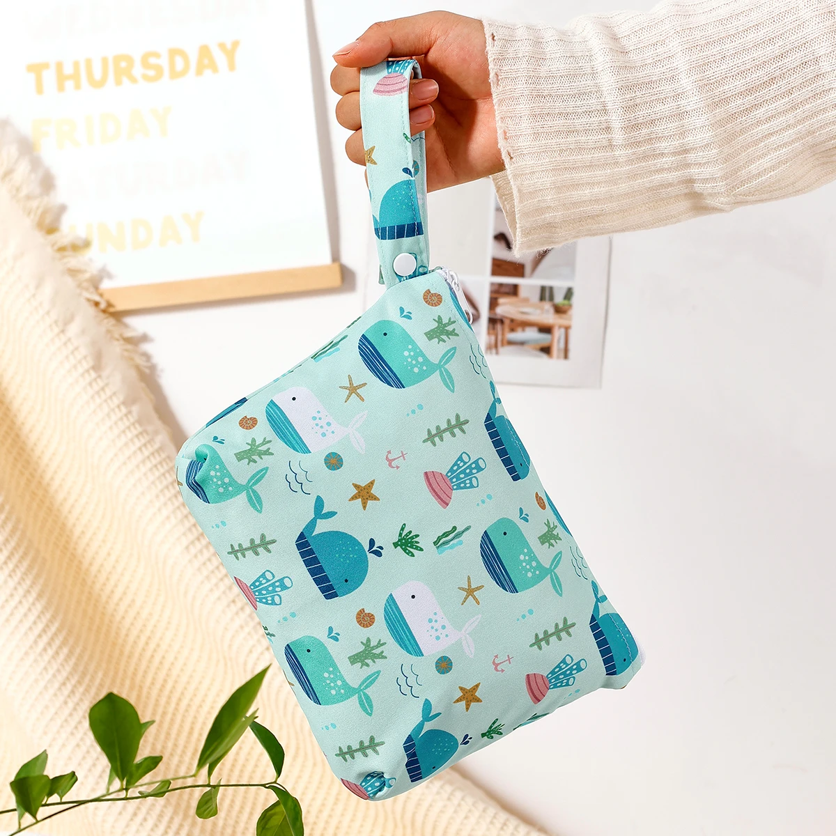 Elinfant 1 bolsa de almacenamiento de un solo bolsillo, con asa y cremallera, bolsa húmeda y seca, bolsa de pañales, bolsa de lavandería