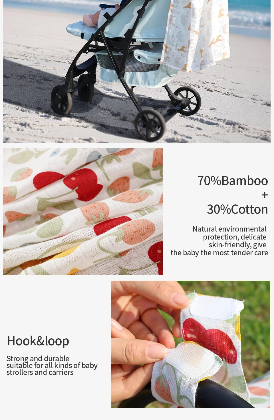Elinfant 1 unidad de dosel para asiento de coche de bambú, funda para asiento de coche de bebé de muselina transpirable, funda para cochecito, funda de protección solar a prueba de viento
