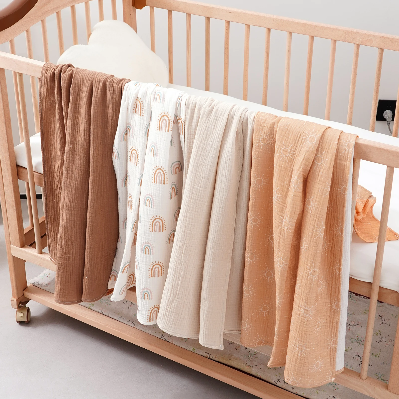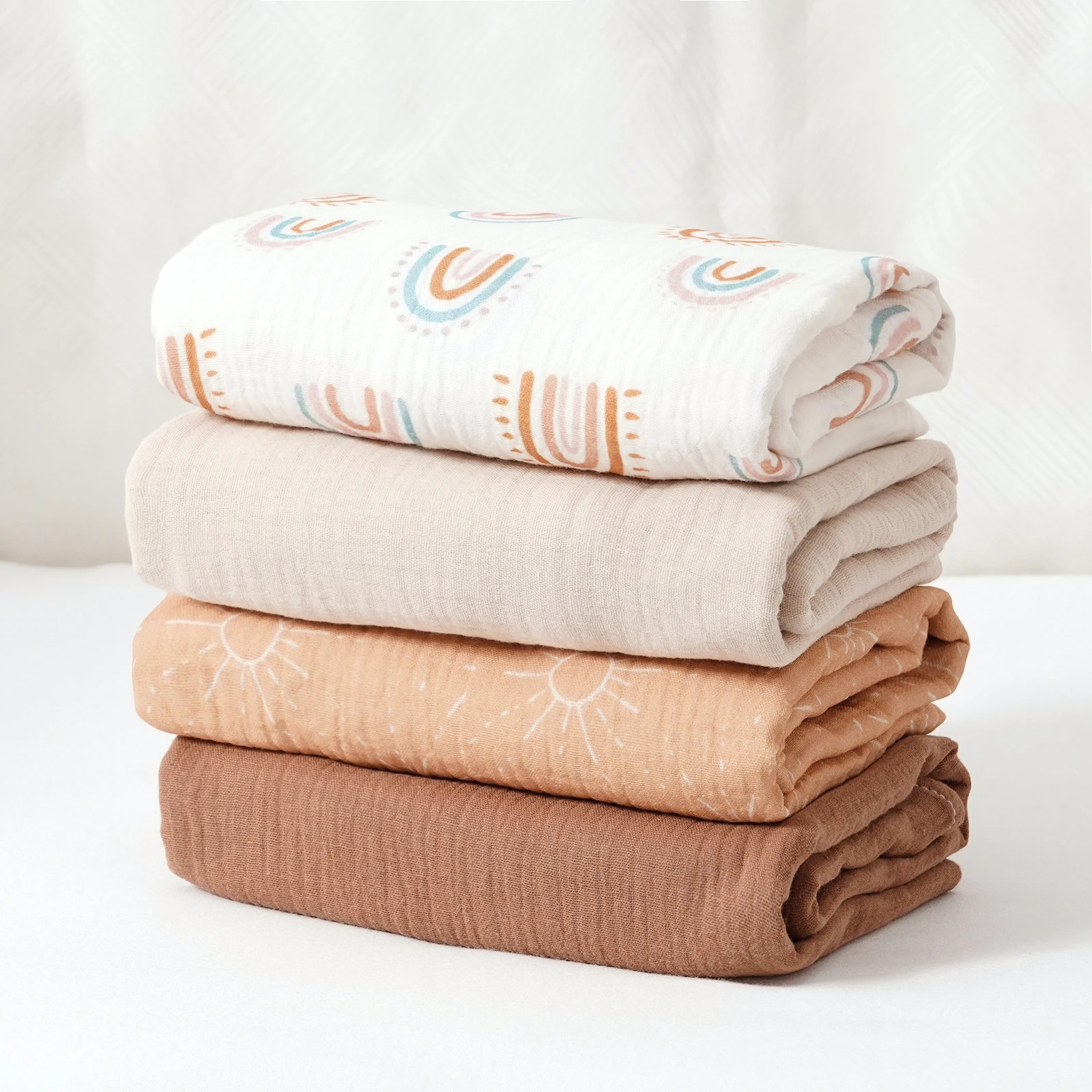 Elinfant 4 Uds. Mantas 100% de algodón para bebé, manta suave y acogedora, mantas receptoras para recién nacidos, ropa de cama, elementos esenciales para guardería