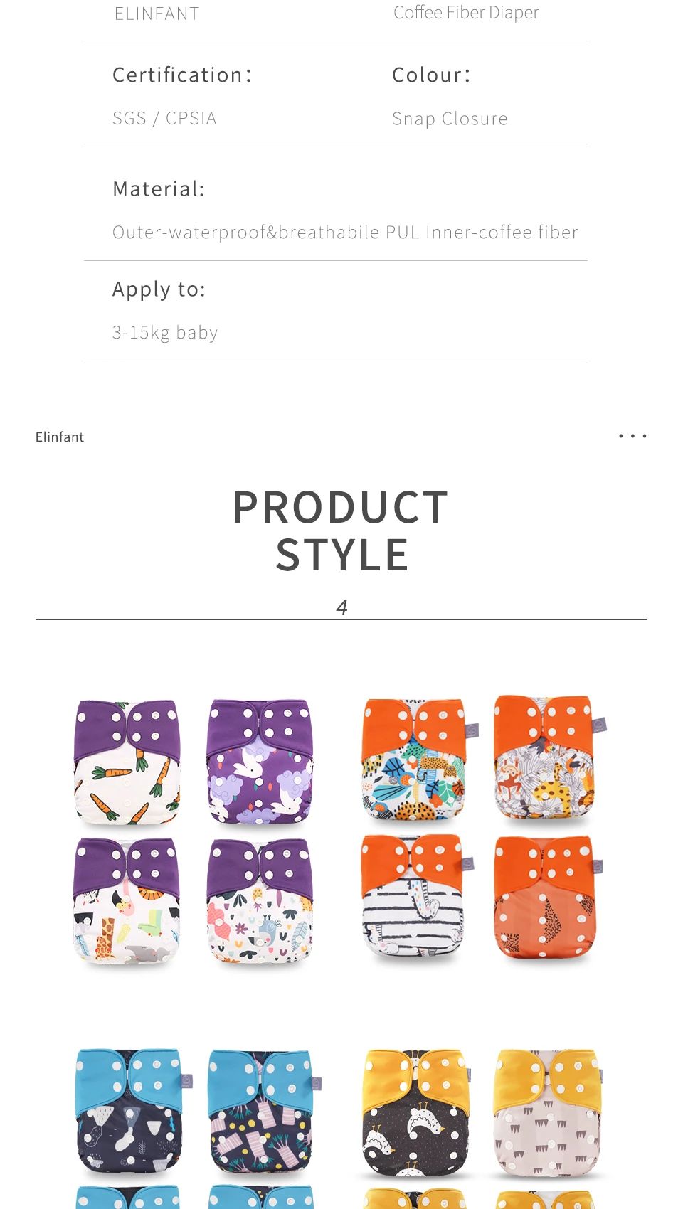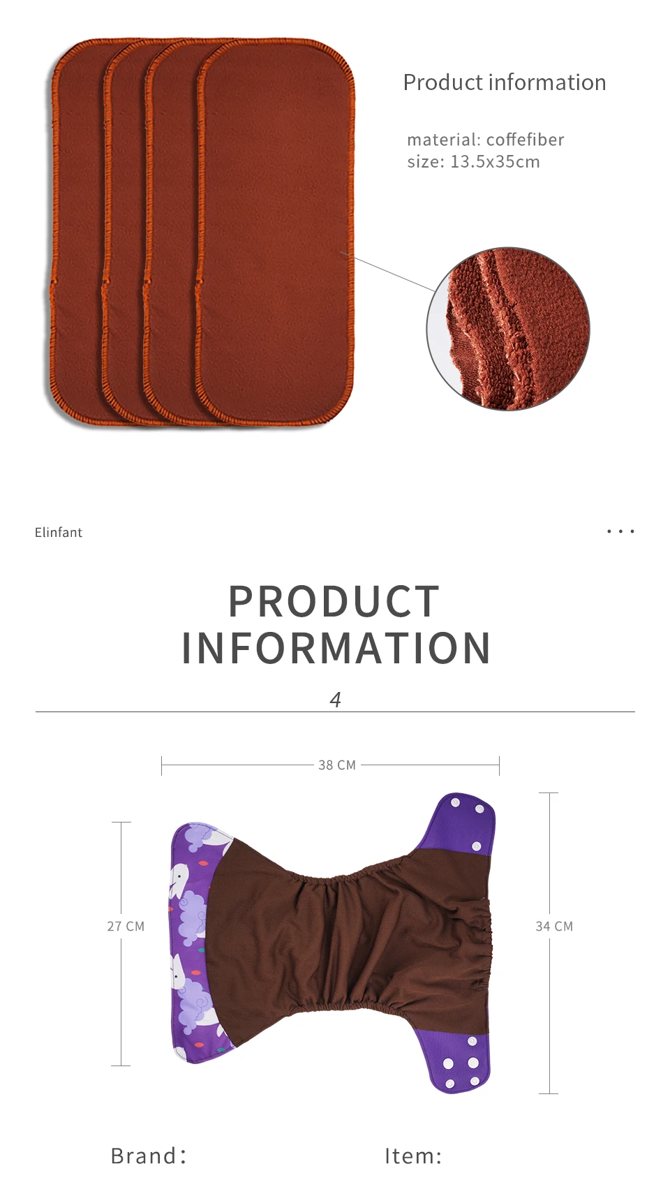Elinfant 4PCS wasserdichte Stoffwindeln Kaffee Mesh Tuch innere wiederverwendbare Baby Taschenwindeln OS wiederverwendbare Stoffwindel