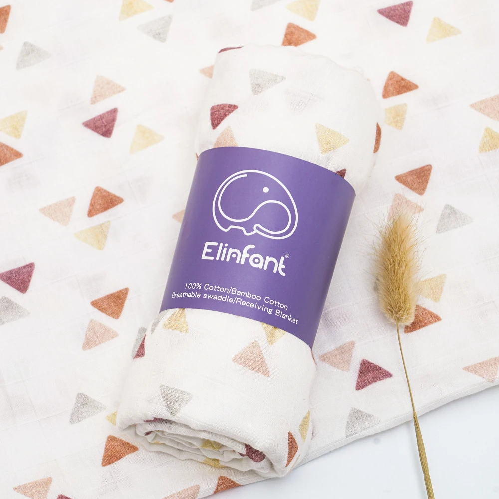 Elinfant Popular Impresión digital Bambú Algodón Muselina Swaddle Mantas Alta calidad 120*110cm Toalla de baño para bebé recién nacido Envoltura