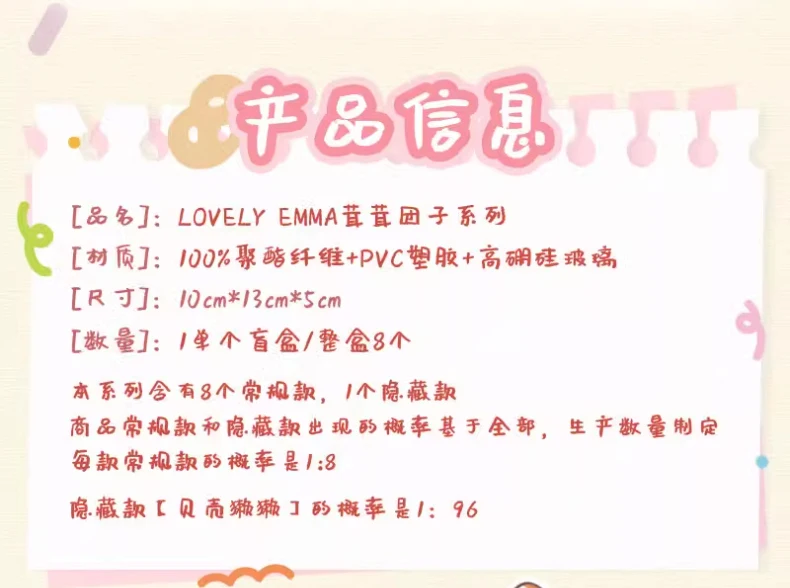 ---INFORMACIÓN---Consejos amables: Nota: La versión oficial genuina del producto está disponible para la venta, con stock disponible 1.Los juguetes de caja ciega no son obras de arte.Los ligeros rayones y otros defectos durante el proceso de producción no son problemas de calidad.No se admiten devoluciones ni cambios. 2.Los productos están sellados antes del envío.No podemos inspeccionarlos antes del envío.Después de recibir la mercancía, grabe un vídeo de unboxing.Registre desde el momento en que abre el paquete exprés hasta abrir la bolsa del producto e inspeccionarla.El número de pedido en el vídeo debe ser claro.Nota: Ya sea que esté lidiando con un reclamo posventa o un reclamo de entrega urgente, se requiere un vídeo de desembalaje completo.Si no hay datos de vídeo, rechazaremos el servicio postventa.Gracias por su cooperación 3. Los productos de caja ciega tienen una rotación rápida, grandes cambios de inventario y muchos productos de preventa. Los compradores urgentes deben consultar sobre la disponibilidad de existencias antes de realizar un pedido.