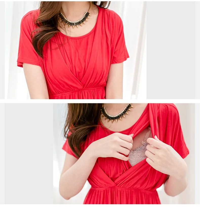1).Emotion Moms moda vestido de lactancia verano ropa de maternidad para mujeres embarazadas vestidos posparto tela suave