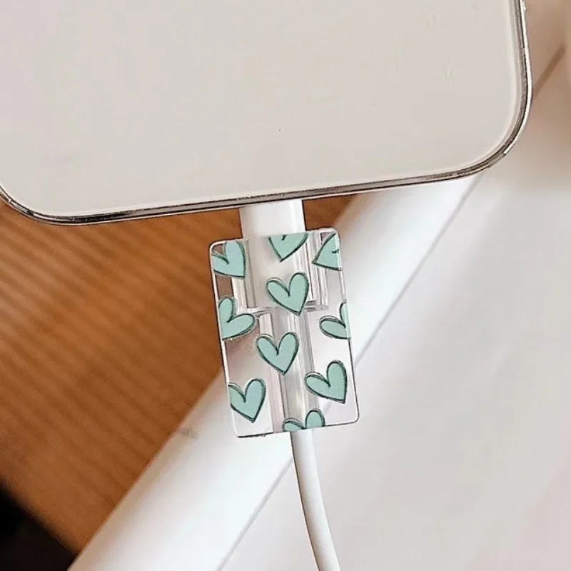 Enrollador de Cable de cargador de silicona suave, funda protectora de Cable de carga rápida para Apple IPhone, Cable de datos, Clip de funda de amor rosa, 1 Uds.