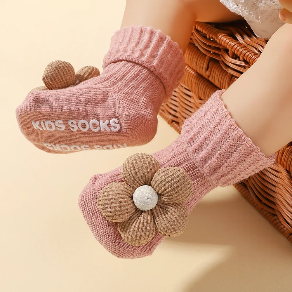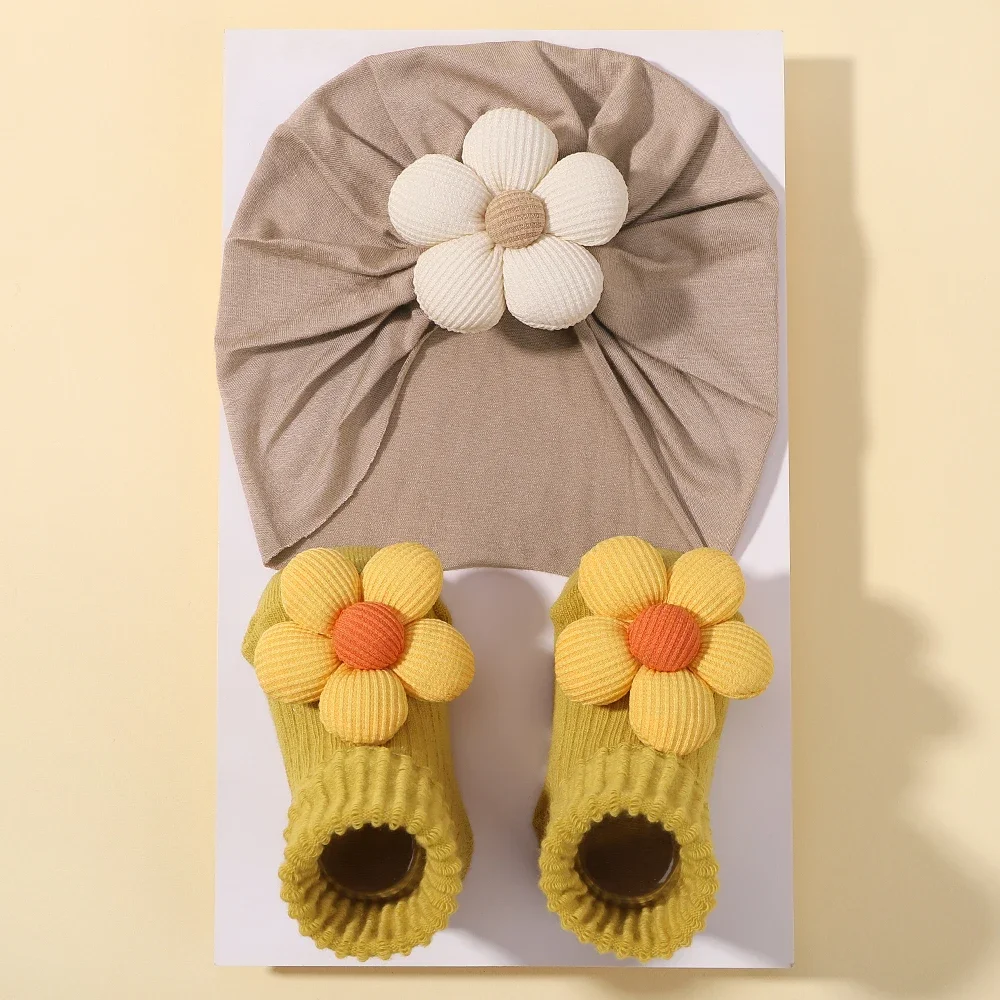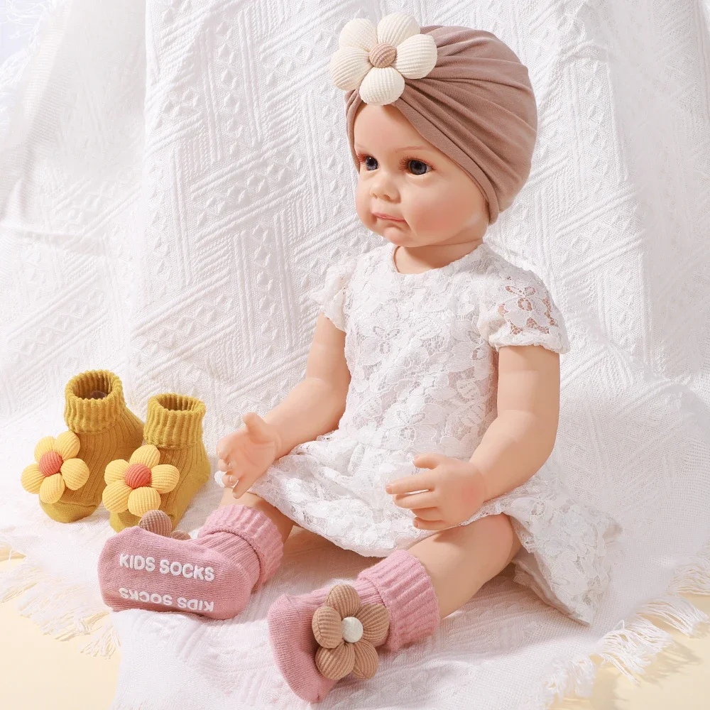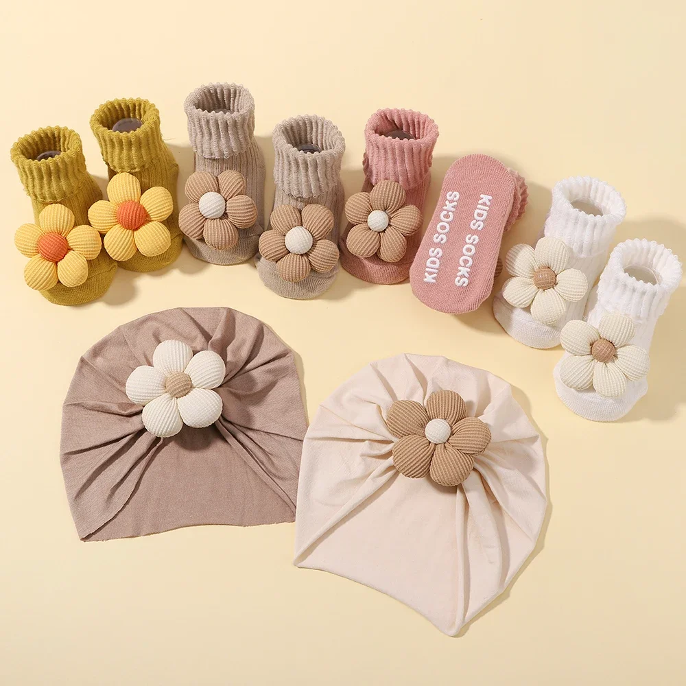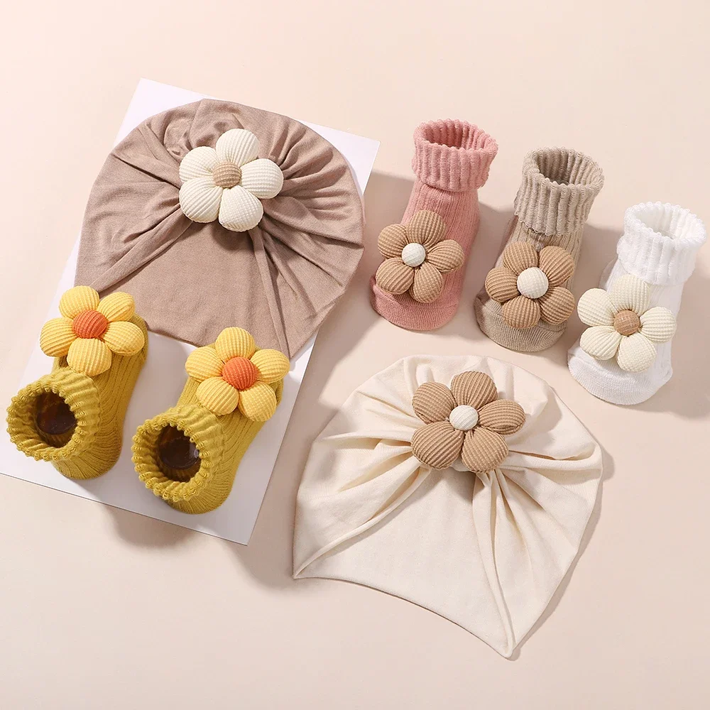 Ensemble de chaussettes de sauna à fleurs pour bébé fille, bandeau épais et doux pour nouveau-né, turban floral élastique, chaussettes courtes, vêtements de sauna pour bébé, 2 pièces