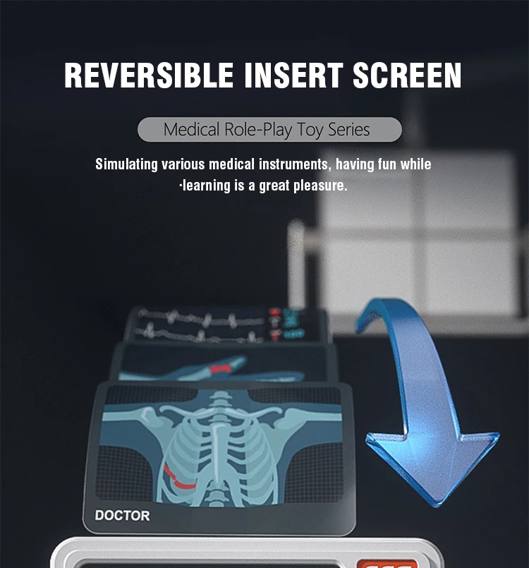 【Una diversión completa de herramientas médicas】 El kit de carrito médico viene con una jeringa, estomatoscopio, termómetro, rayos X y más.El auténtico efecto de luz y sonido de latido del corazón de la vida real.