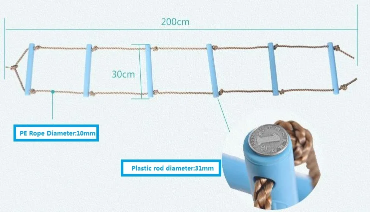 Especificaciones:Tipo: cuerda de escalera de escaladaMateriales: Pelele de plástico,Tamaño de la cuerda de PE: aprox. 200x 30cmRodamiento de carga de cuerda: aproximadamente 300KgEdad adecuada: más de 3 añosDetalles de medición en la imagen adjunta.El paquete incluye: 1 * cuerda de escalera de escaladaCaracterísticas:100% nuevo y de alta calidad.1. Esta escalera de escalada de cuerda de 6 peldaños con puntales de madera y anillo de gancho de metal es buena para la diversión del juego al aire libre.2. ¡El columpio proporcionará a los niños horas de diversión al aire libre durante toda la temporada!3. Ideal para que los niños trepen al aire libre, entren en las casas de los árboles u otros juegos de rol.4. Gran adición para su casa arbórea, swingset o casa de juegos.5. Lugares adecuados: perfecto para el jardín, el hogar o en la tienda de ropa para niños, gimnasio, Centro de Ocio y apartamento.6. Perfecto para el equilibrio de los niños, habilidades y entrenamiento de fuerza.7. Gran juguete para que tu bebé juegue y se relaje.Nota:1. Permite un error de 0 ~ 1 pulgada debido a la medición manual. Gracias por su comprensión.2. Los monitores no están calibrados del mismo modo, el color del artículo que se muestra en las fotos puede verse ligeramente diferente al objeto real. Por favor, tome el real como estándar.
