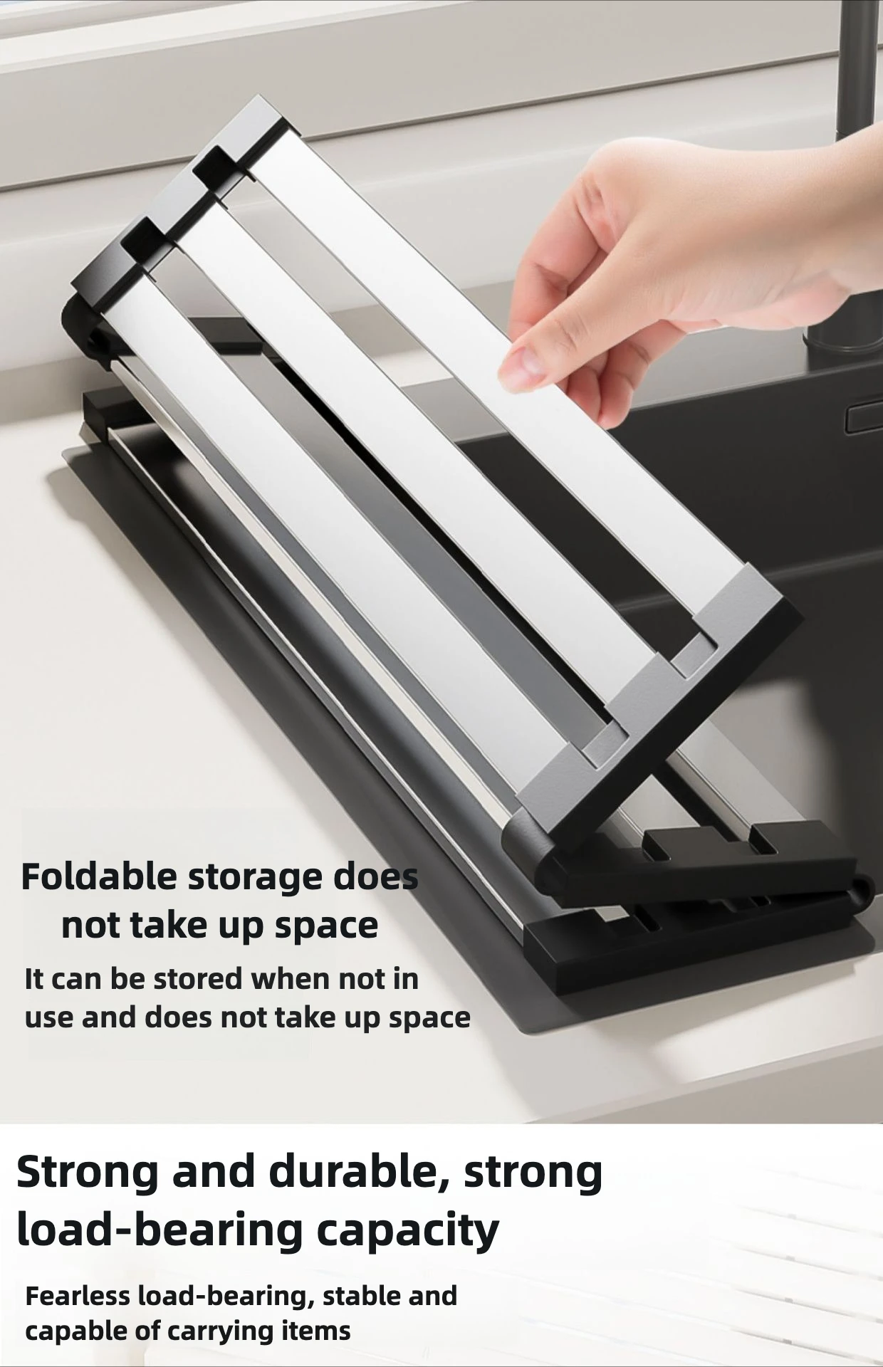 Escurridor plegable de acero inoxidable para fregadero, organizador de secado resistente al calor para tazones, platos, solución de almacenamiento para encimera