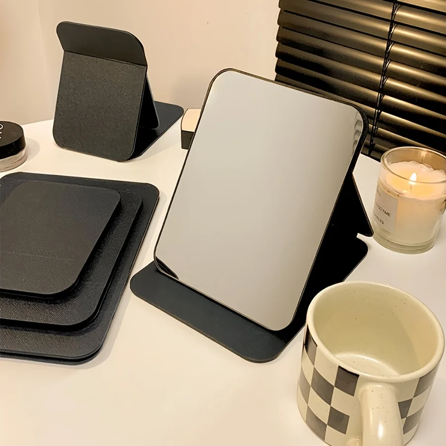 Espejos de belleza portátiles, espejo de maquillaje plegable con soporte de PU, adecuado para uso en dormitorio y escritorio, 1 ud.
