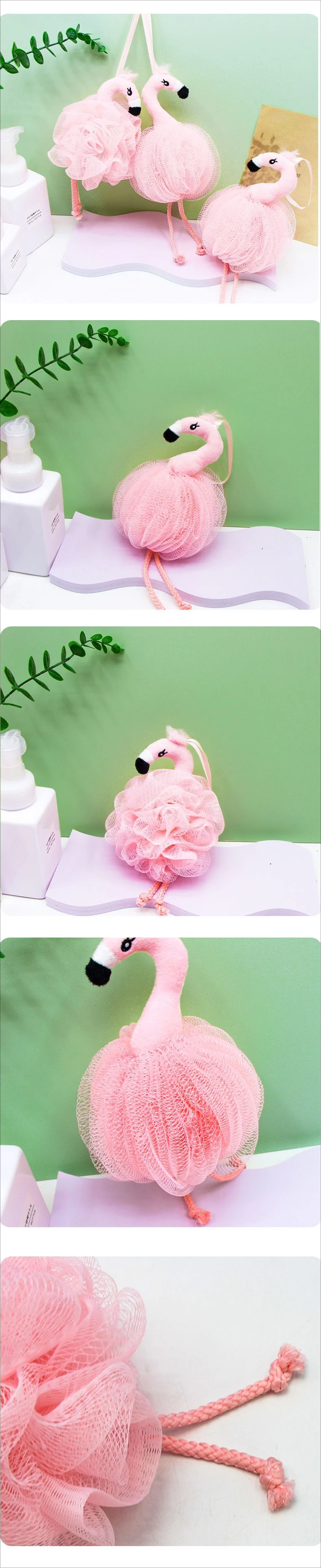 Esponjas de baño de flamenco para niños, PUF de baño de lufa, juguete de animales de malla, esponja de baño, bolas de depurador corporal coloridas, malla de ducha para niños