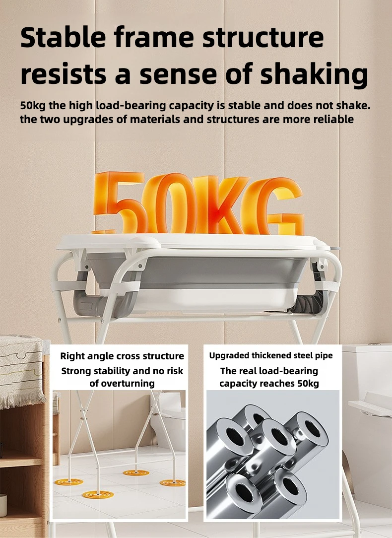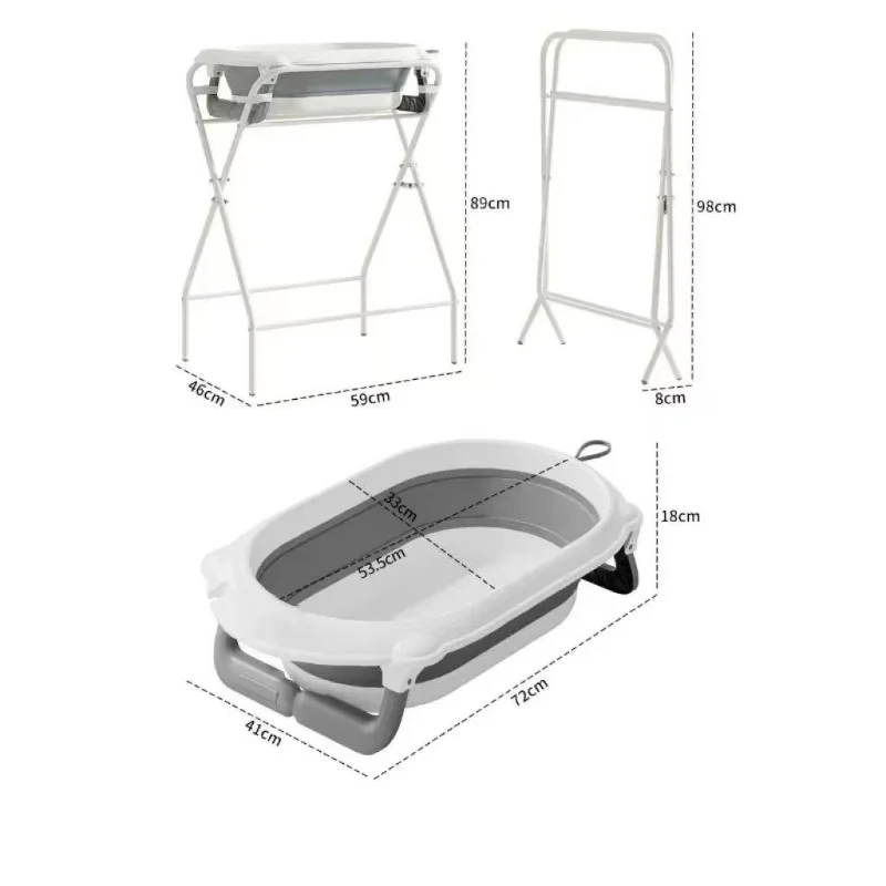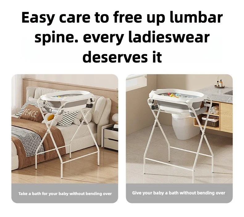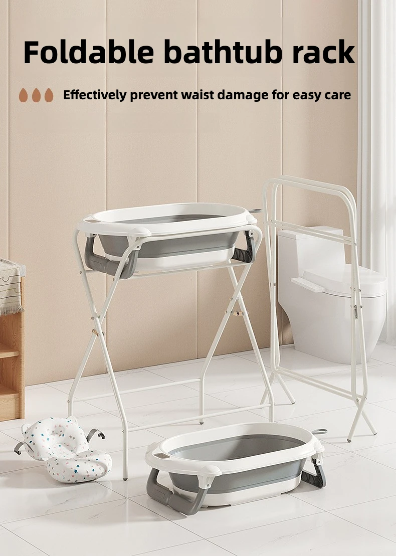 Estación de baño para bebés sin doblar con soporte: bañera plegable, soporte para lavabo y tendedero para recién nacidos y niños pequeños, ahorro de espacio