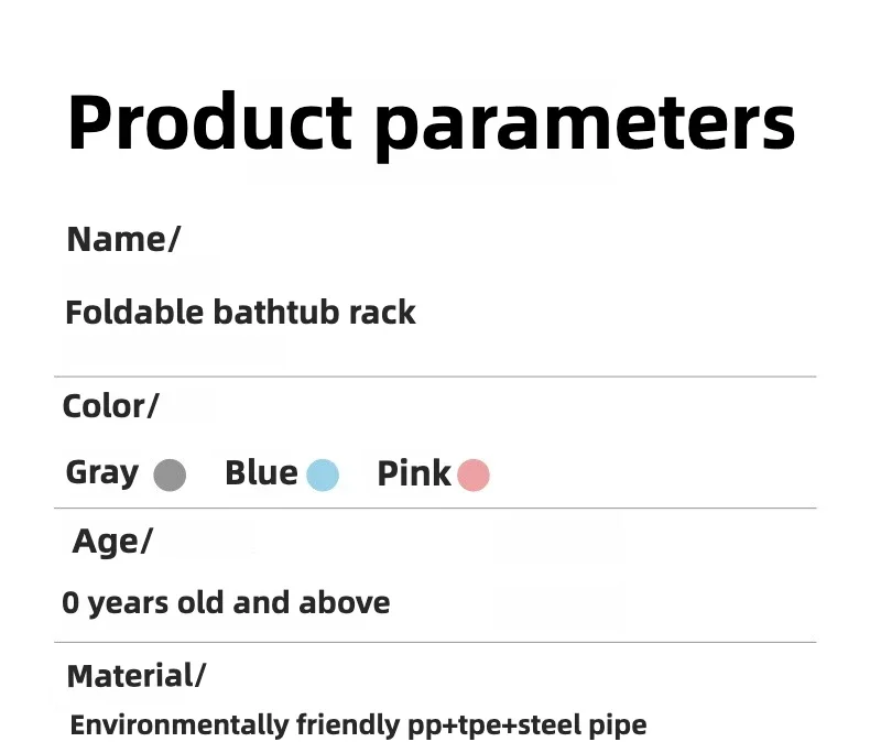 Color: gris/azul/rosa Embalaje individual: 40*11*65cm Peso neto: 3,25 kg/Peso bruto: 3,65 kg (1 unidad)La bañera no tiene sensor de temperatura, verifique cuidadosamente antes de realizar el pedido.