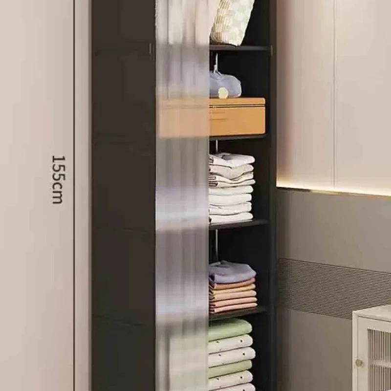 Comprar Estante de almacenamiento multicapa, armario de almacenamiento a prueba de polvo, estantería multifuncional con cortinas, estantes organizadores de armario