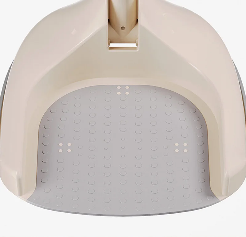 Diseño del producto: la base tiene su propio orificio de drenaje, pasamanos simulado y respetuoso con el medio ambiente, respaldo artificial, diseño de triángulo mecánico para evitar vuelcos, almohadilla antideslizante para los pies y bloqueo de seguridad independiente.