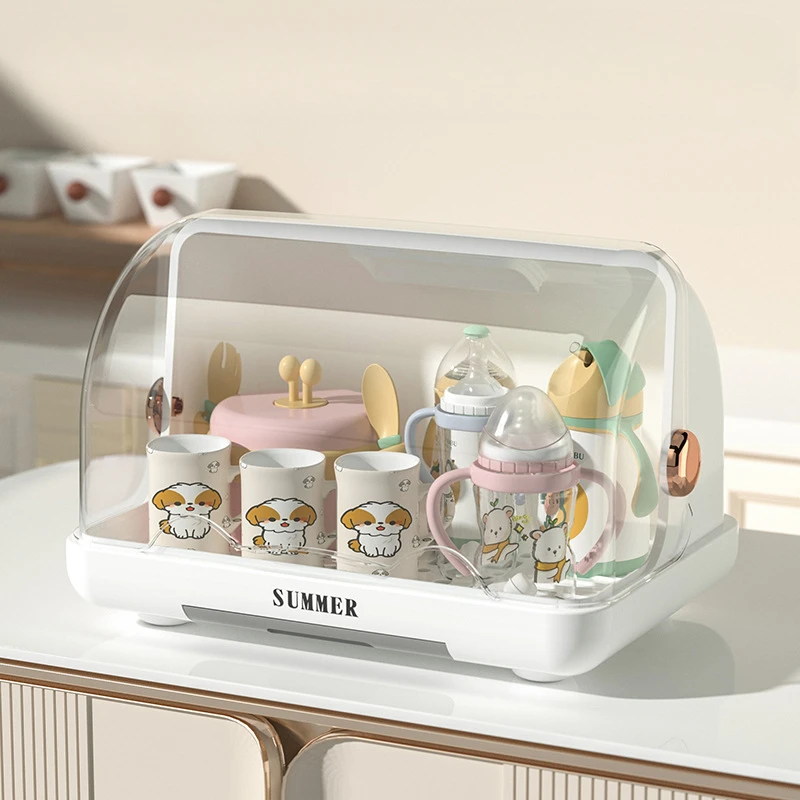 Comprar Estante esterilizador de tazas, bandeja transparente a prueba de polvo, escurridor de botellas fácil de limpiar, organizador ventilado multiusos, separación libre