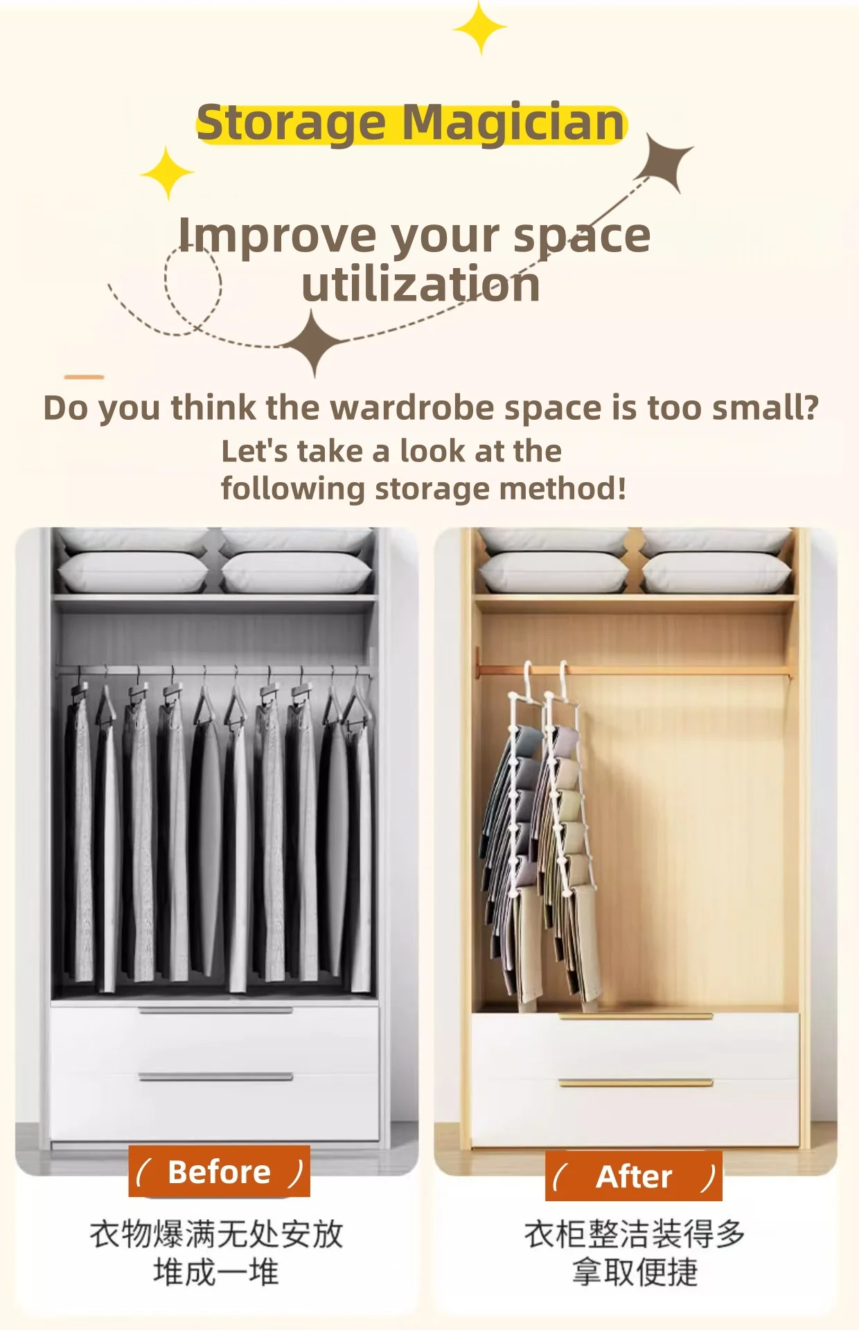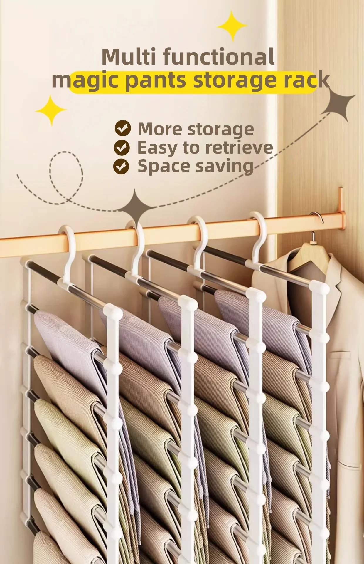 Comprar Estante plegable para pantalones de 6 capas, 1-2 uds., colgador multifuncional para pantalones, estante mágico para pantalones sin costuras para el hogar, almacenamiento mágico y que ahorra espacio