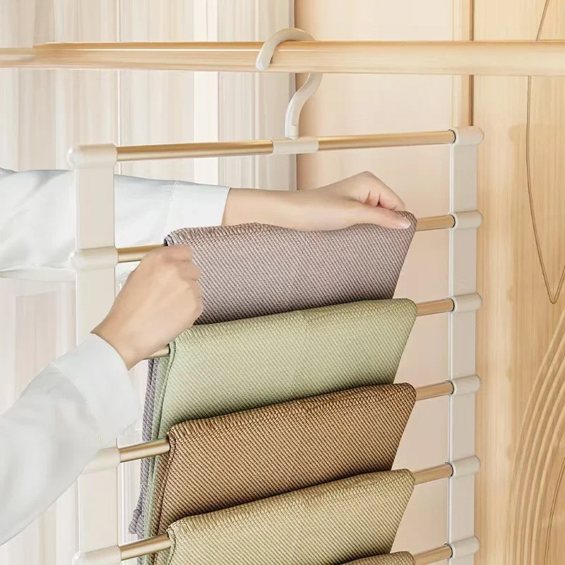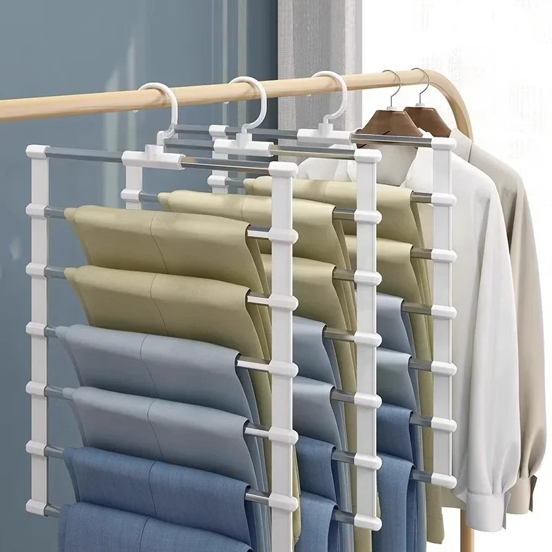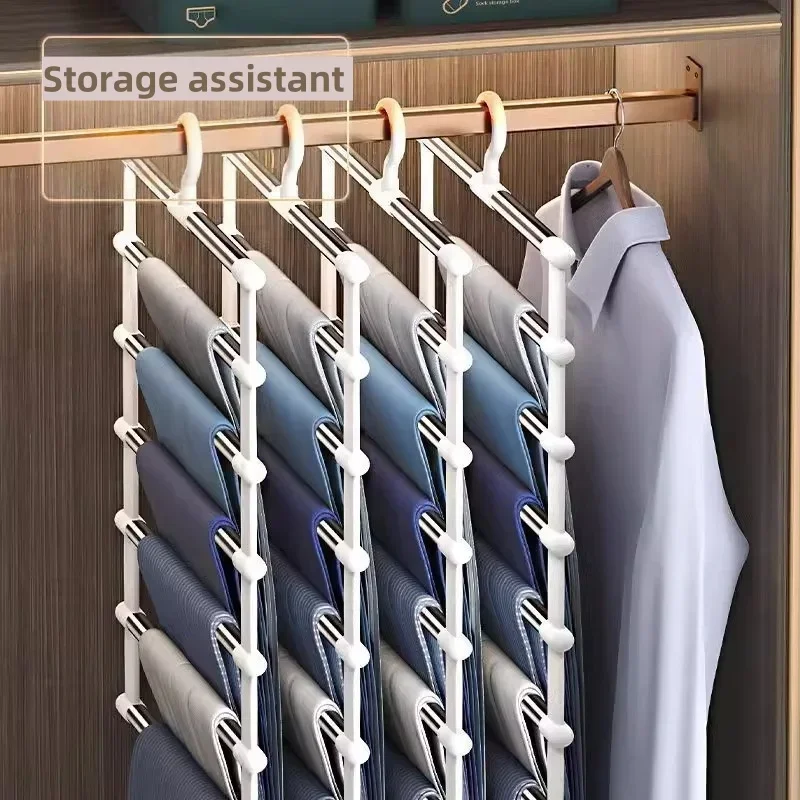 Comprar Estante plegable para pantalones de 6 capas, 1-2 uds., colgador multifuncional para pantalones, estante mágico para pantalones sin costuras para el hogar, almacenamiento mágico y que ahorra espacio