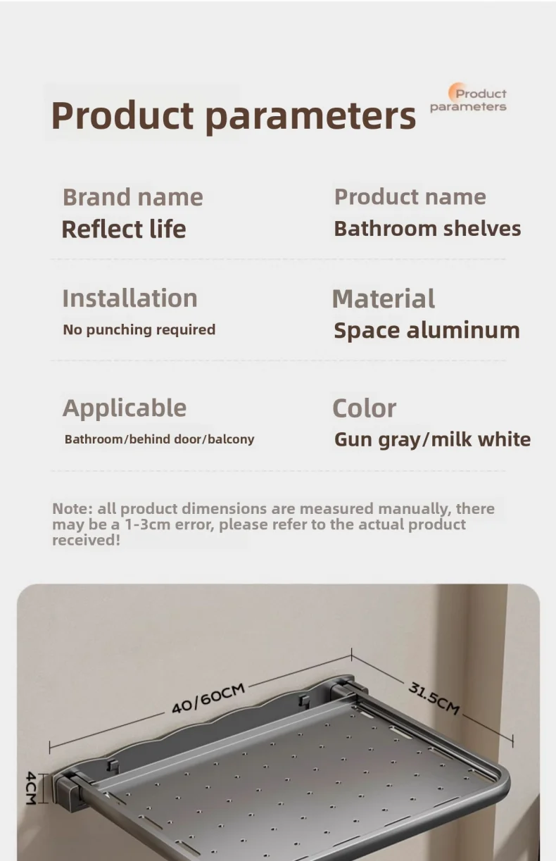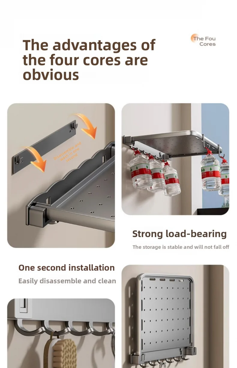 Color: [Blanco leche] Estante de almacenamiento de 40 cm + 6 ganchos [Fácil de desmontar y lavar]