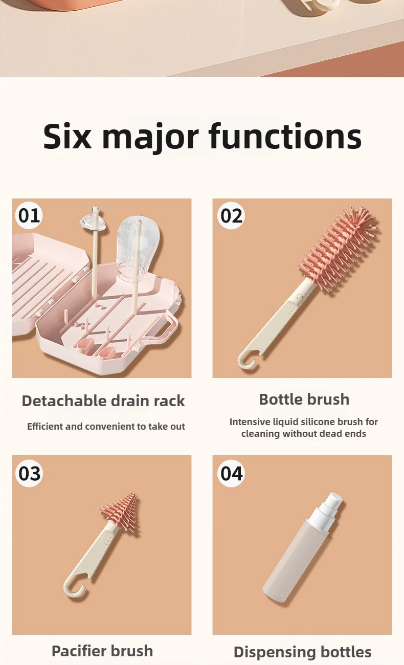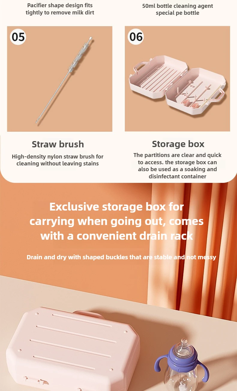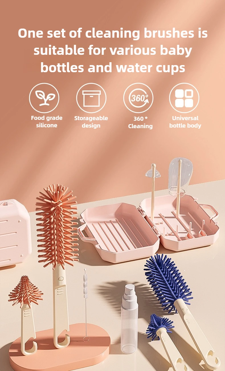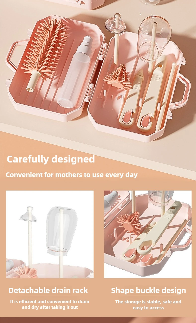 Estante para secar botellas, estante para botellas con drenaje, juego de cepillos para botellas con pezones, caja de almacenamiento, juego de estante para secar botellas portátil