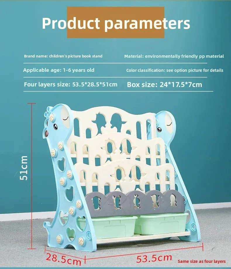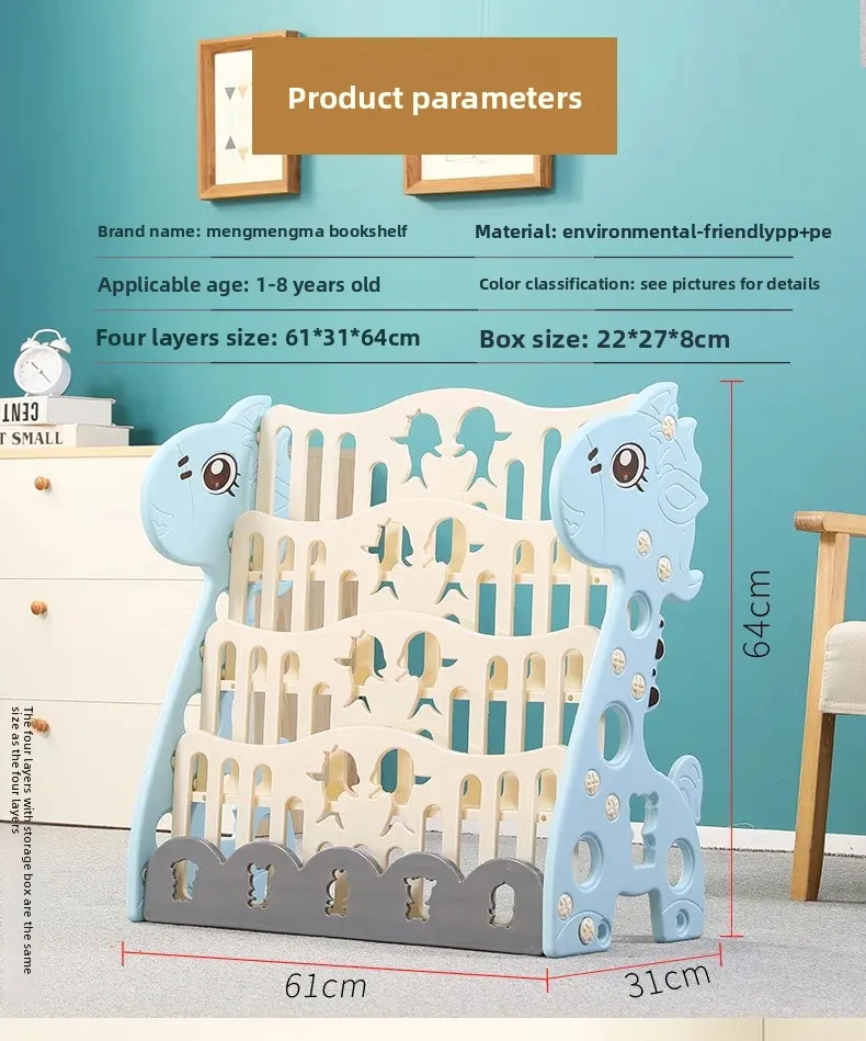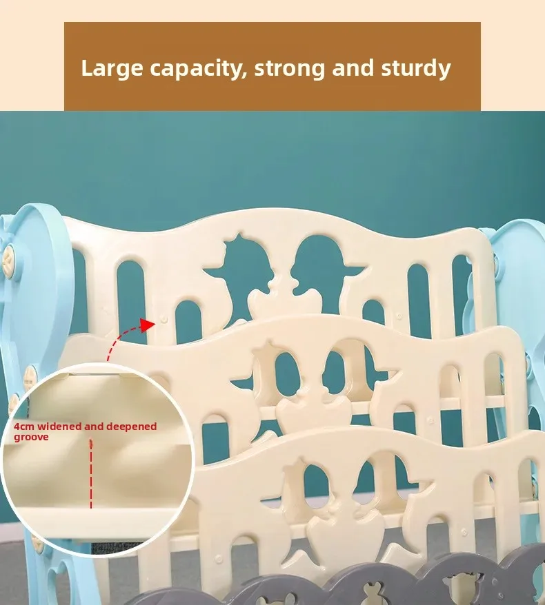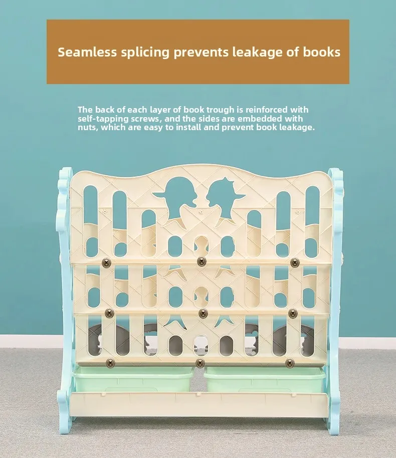 Título EN: Estantería para niños con organizador de almacenamiento de juguetes, estante de plástico de dibujos animados para guardería o jardín de infantes Características clave: Hecho de plástico ecológico inodoro y seguro para niños. El diseño educativo y divertido promueve el aprendizaje. Fácil de montar sin necesidad de herramientas. Estructura reforzada para mayor durabilidad. Gran capacidad para libros y juguetes. Palabras clave SEO: estantería para niños, organizador de juguetes, estantería para libros de dibujos animados, estantería para niños, estantería para bebés, estante para juguetes para niños pequeños, estantería para guardería, unidad de almacenamiento para jardín de infantes, estante para libros de fácil montaje, muebles coloridos para niños