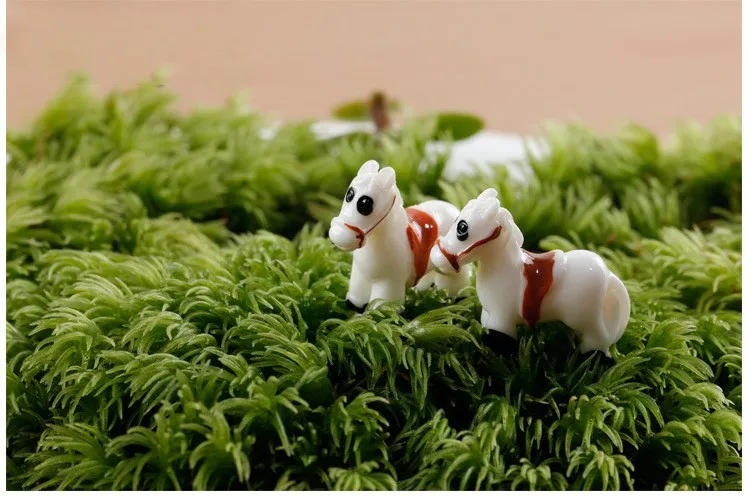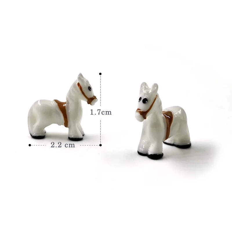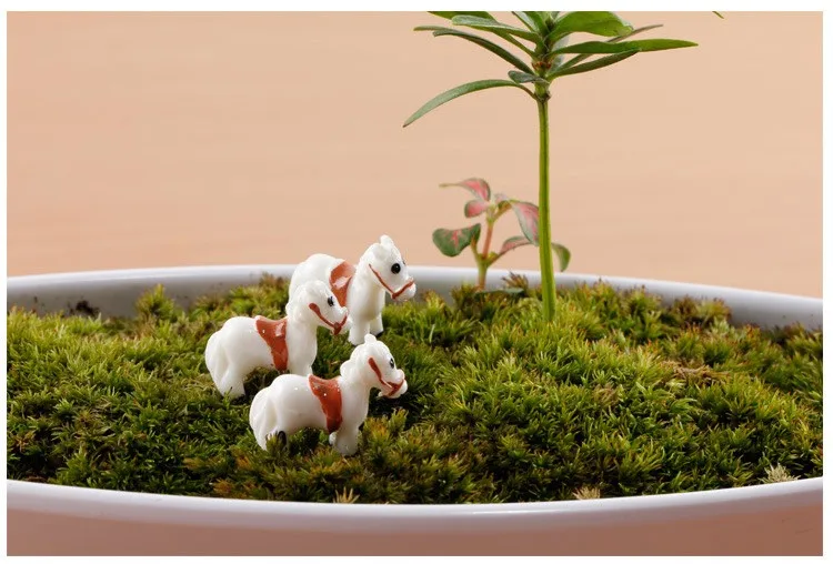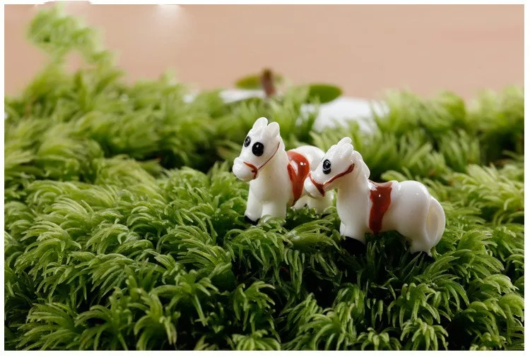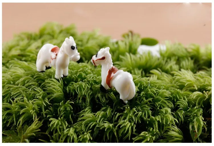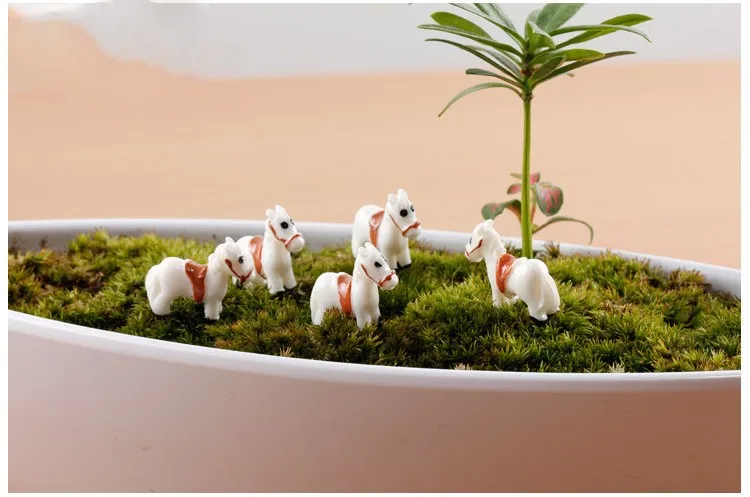 Estatuilla de Caballo Blanco, decoración de Aniaml en miniatura, mini Jardín de hadas, estatua de animal de dibujos animados, artesanía de resina, decoración de coche para el hogar