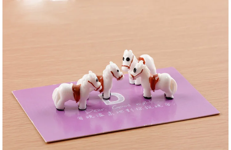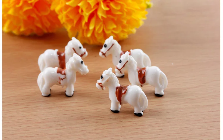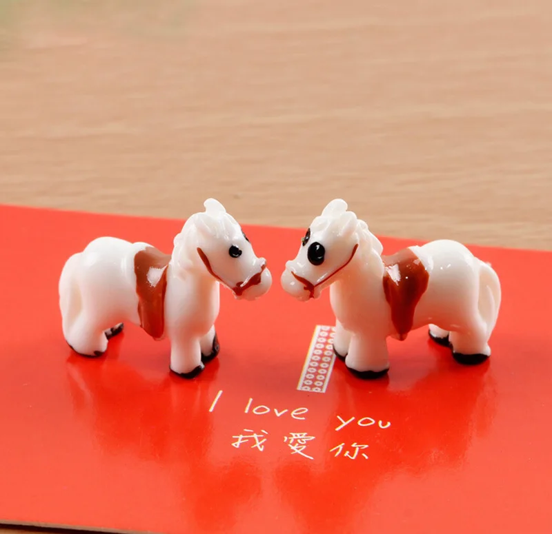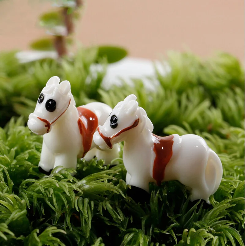 Estatuilla de Caballo Blanco, decoración de Aniaml en miniatura, mini Jardín de hadas, estatua de animal de dibujos animados, artesanía de resina, decoración de coche para el hogar