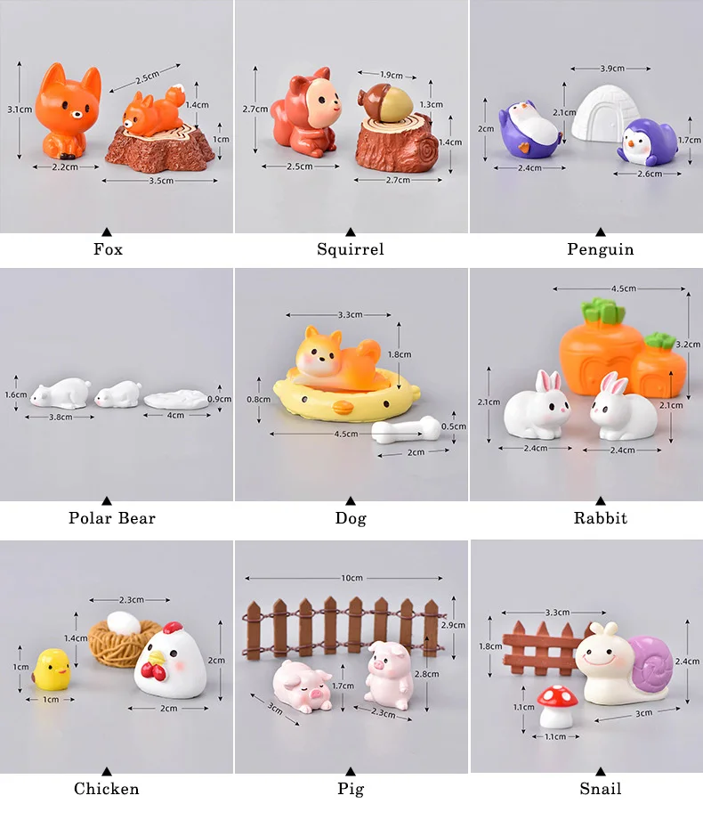 Estatuilla de conejo, cerdo, pollo, zorro, resina, modelo Animal de dibujos animados, decoración del hogar, accesorios de decoración de pastel de jardín de hadas en miniatura