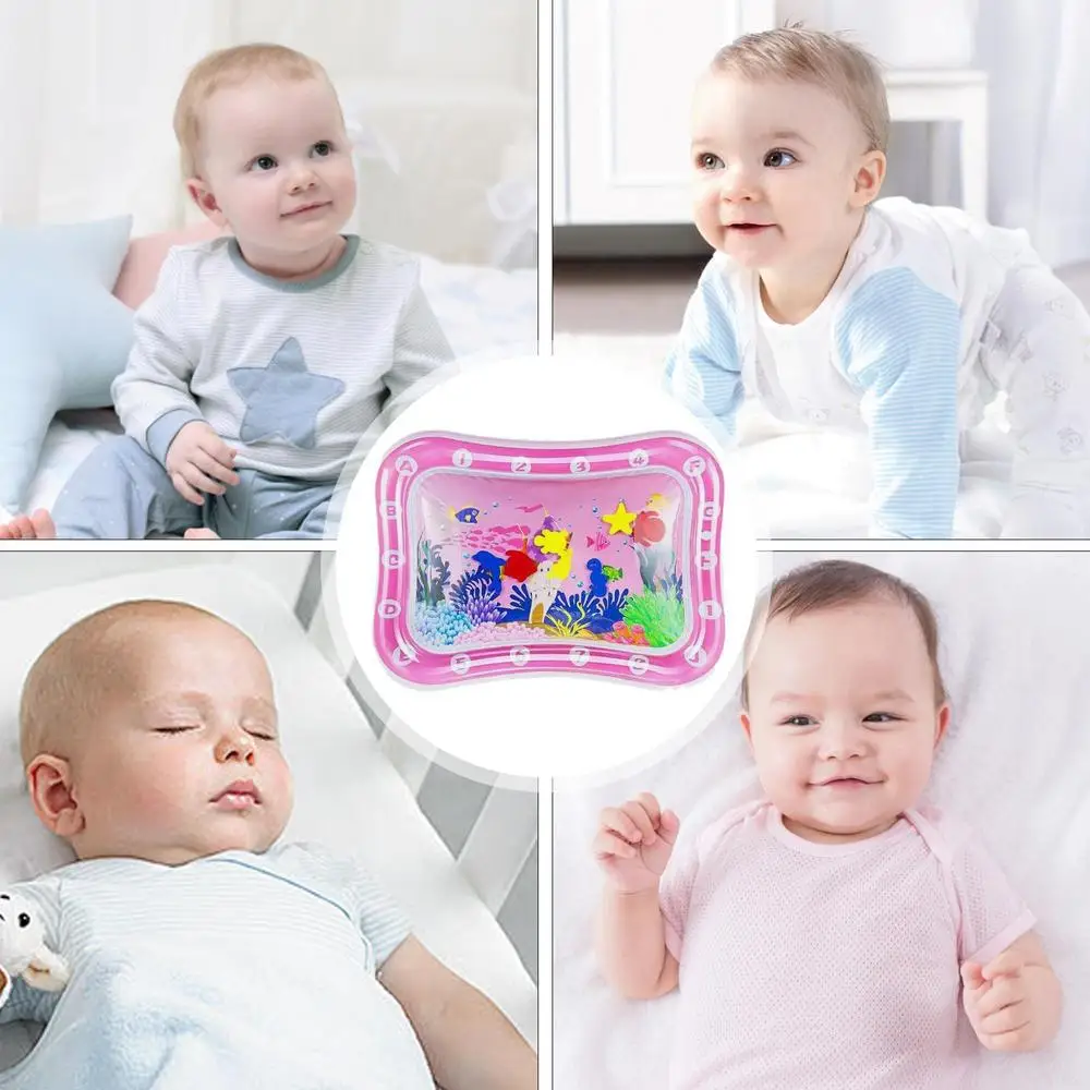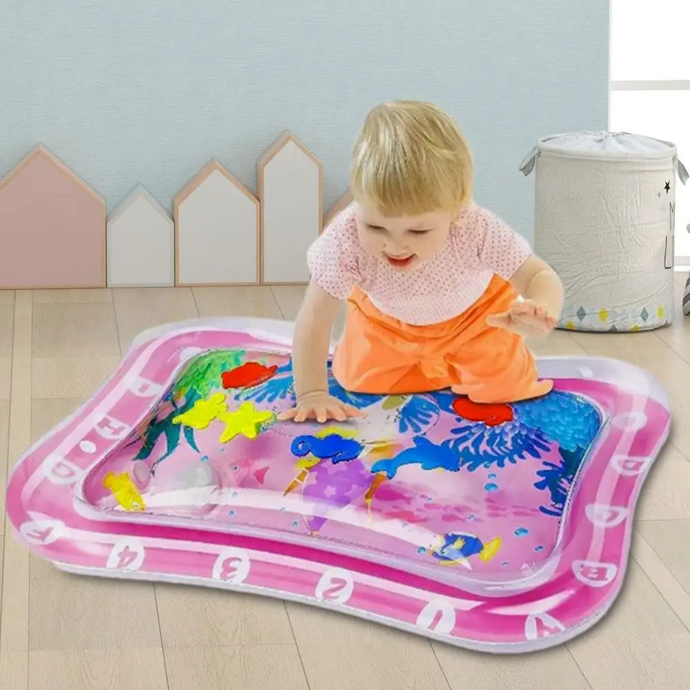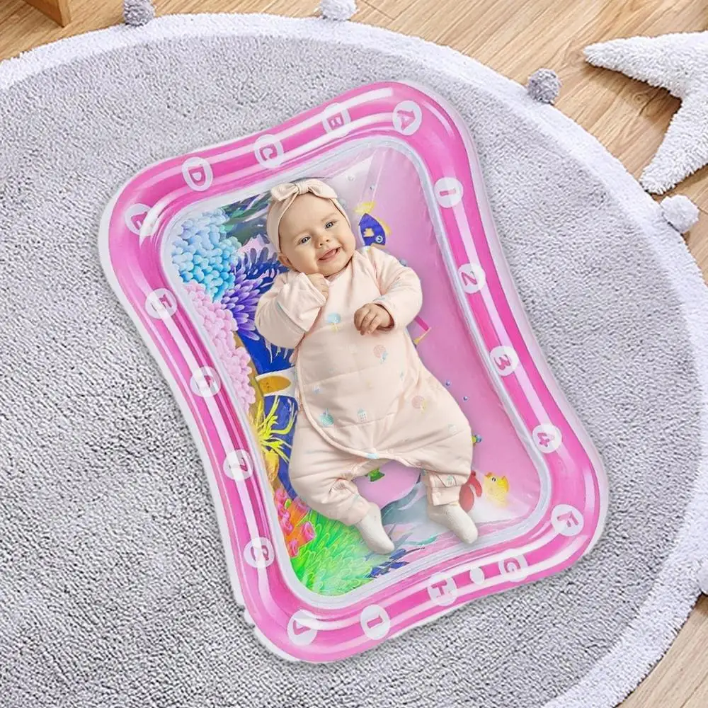 2. Conveniente para llevar: ingeniosamente diseñada para una portabilidad sin esfuerzo, esta almohadilla de agua inflable para niños se puede desinflar y doblar rápidamente, lo que garantiza que ocupe un espacio mínimo, lo que la hace tanto para disfrutar del hogar como para aventuras de viaje.