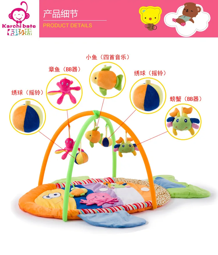Comprar Estera de gateo musical para bebé, tela de algodón, alfombra de juego para bebé, estera de fitness, soporte, juguetes educativos, cojín de seguridad para niños