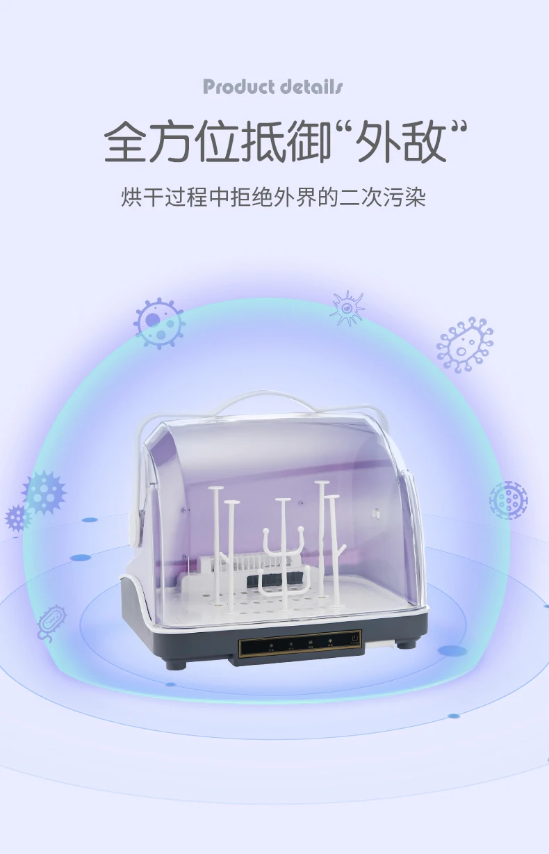 Esterilizador de biberones de leche UV con control táctil - Secador de utensilios de alimentación para bebés 2 en 1 con capacidad de 10 litros y almacenamiento antibacteriano