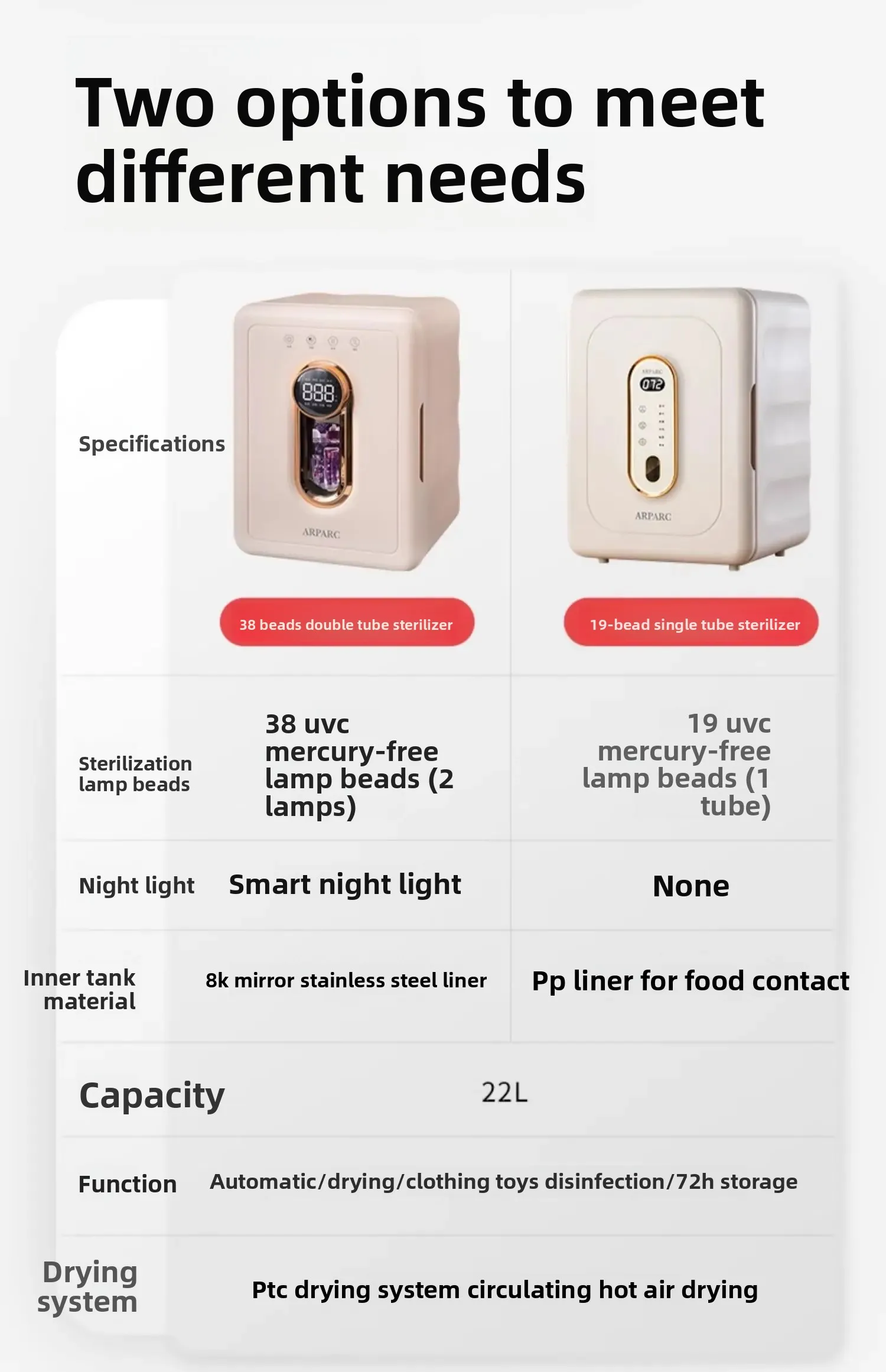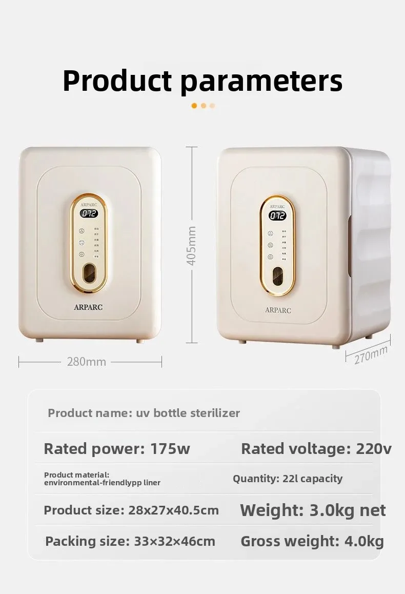 Esterilizador de biberones UV + Secador de aire caliente 2 en 1, gabinete de desinfección para guardería de gran capacidad con esterilización con un solo toque