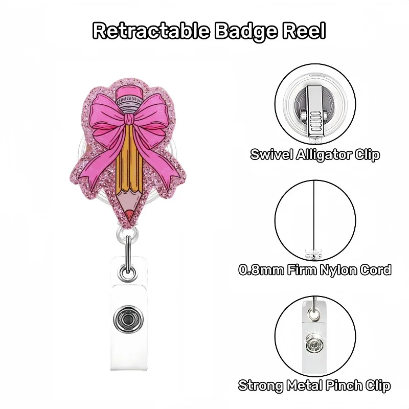 Comprar Estetoscopio con lazo acrílico brillante, carrete de insignia, etiqueta de nombre, Clip de cocodrilo, tarjetero de identificación retráctil, Clip creativo para insignia de enfermera médica