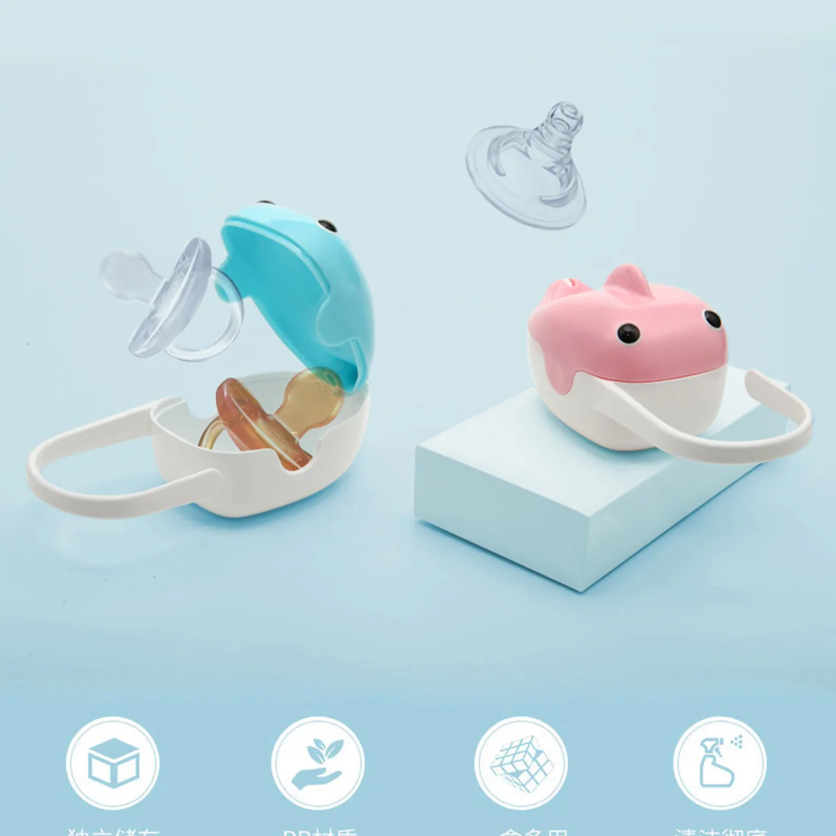 Soporte para chupete de ballena para bebé, estuche de almacenamiento para chupete duradero seguro de gran capacidad, estuche portátil para chupete de viaje al aire libre para bebé