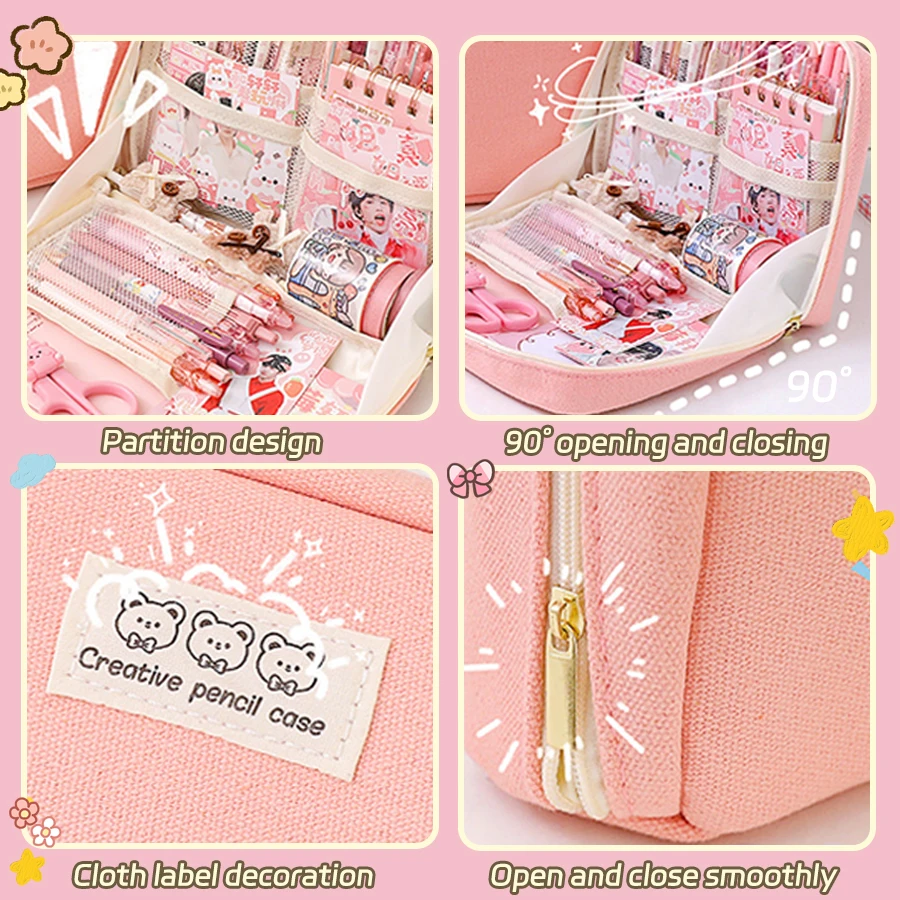 Comprar Estuche de lápices Kawaii, bolsa de gran capacidad, caja para niñas, escuelas japonesas coreanas, suministros de oficinas
