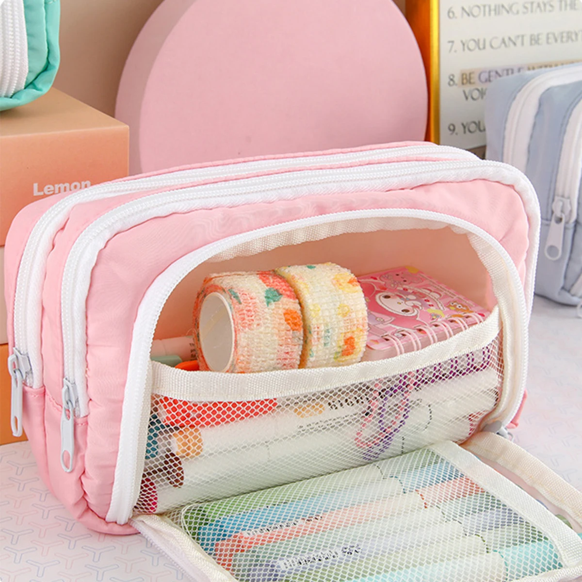 Estuche de lápices Kawaii de gran capacidad, estuche para bolígrafos estéticos, estuche para bolígrafos para niños, suministros escolares y de oficina, papelería coreana