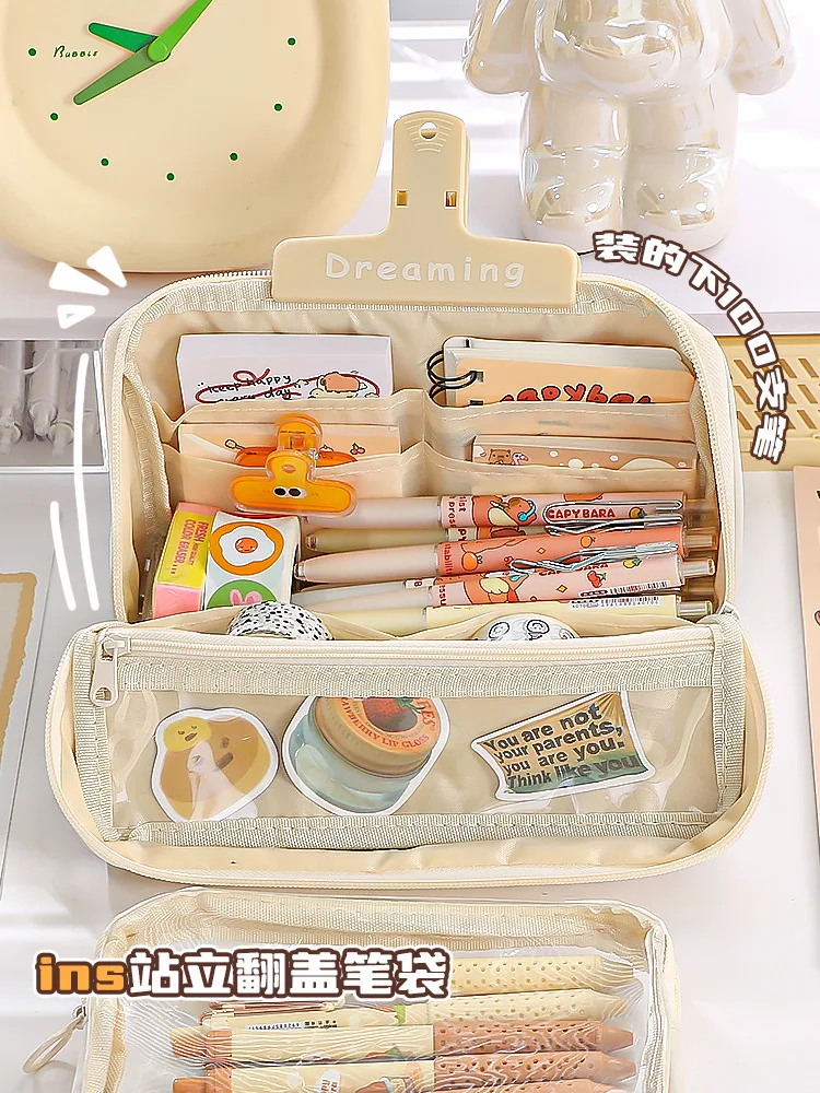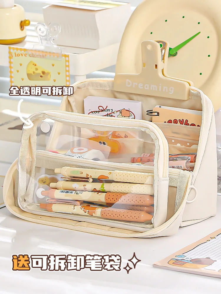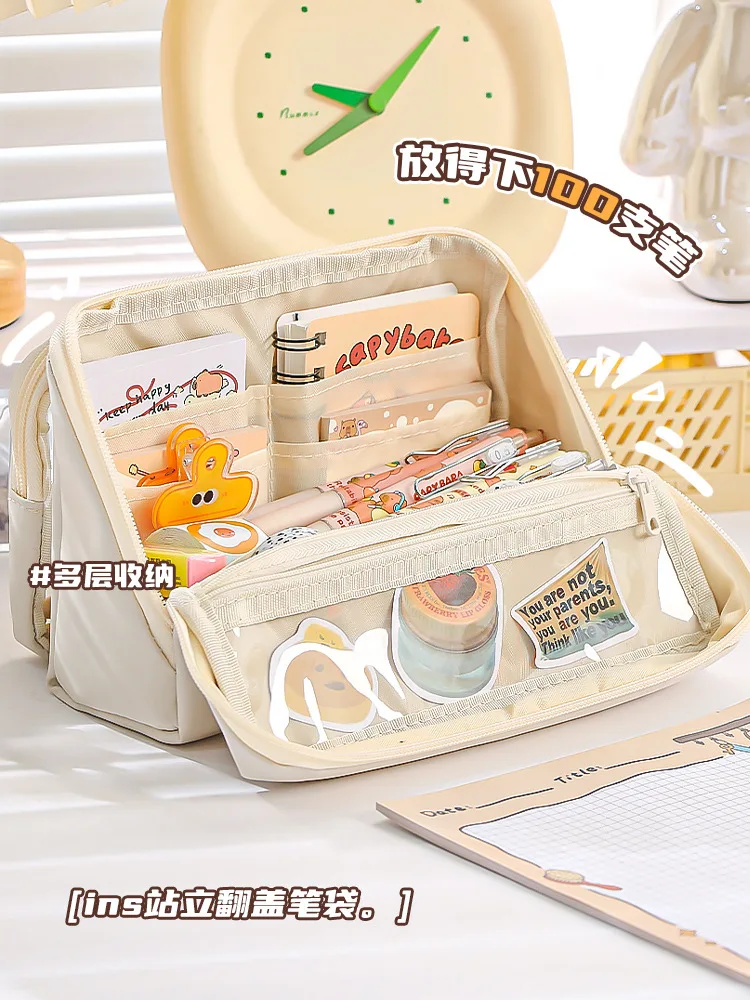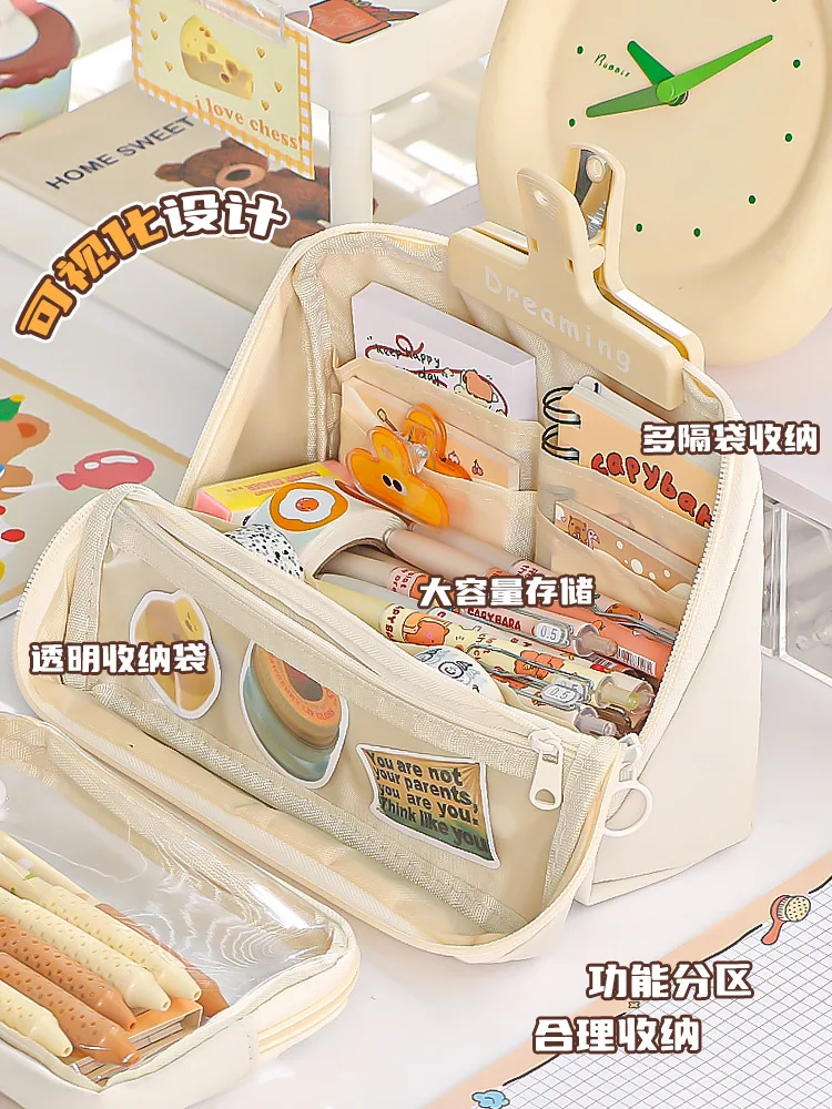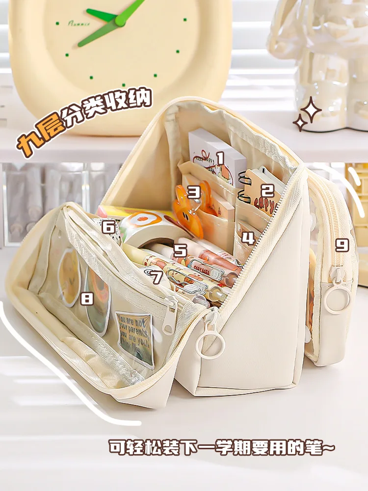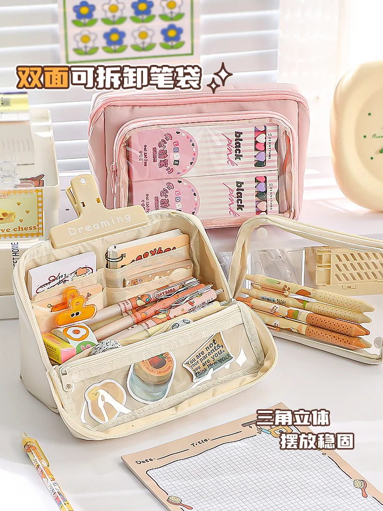 Estuche para lápices multicapa de gran capacidad, estuche para lápices de papelería para niñas, estuche para lápices de tela de algodón para niñas, regreso a la escuela